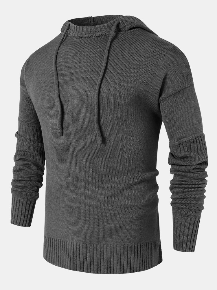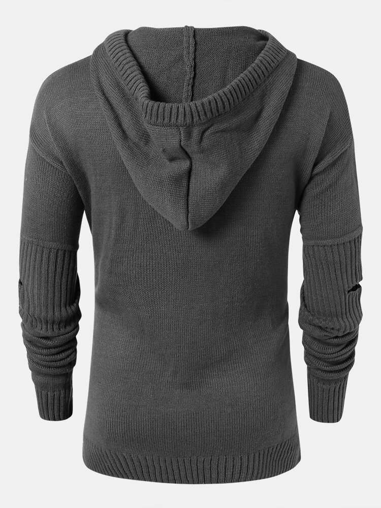 Mens Solid Color Design Cut Out Sleeve Kitted Hooded Sweaters – Black S
