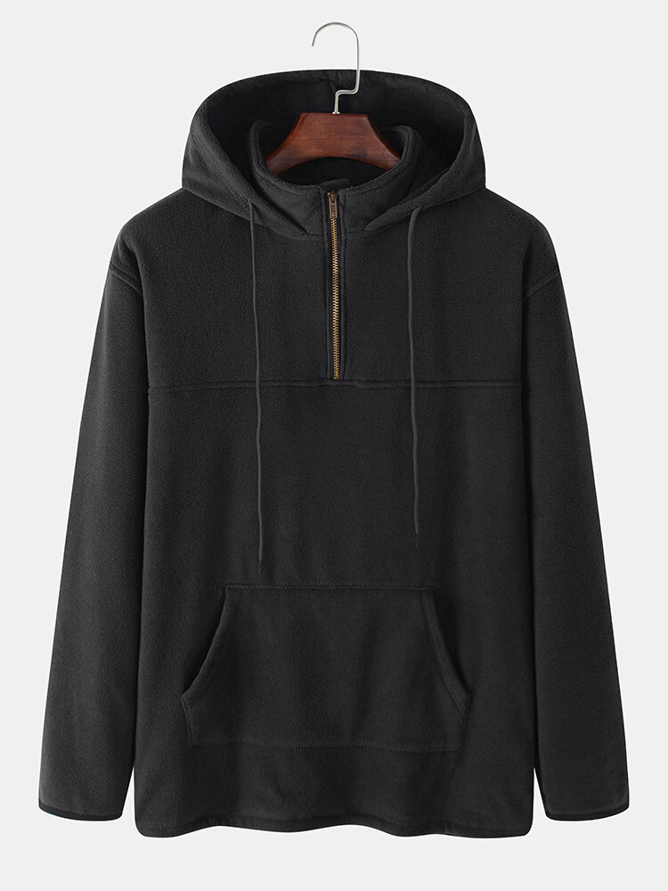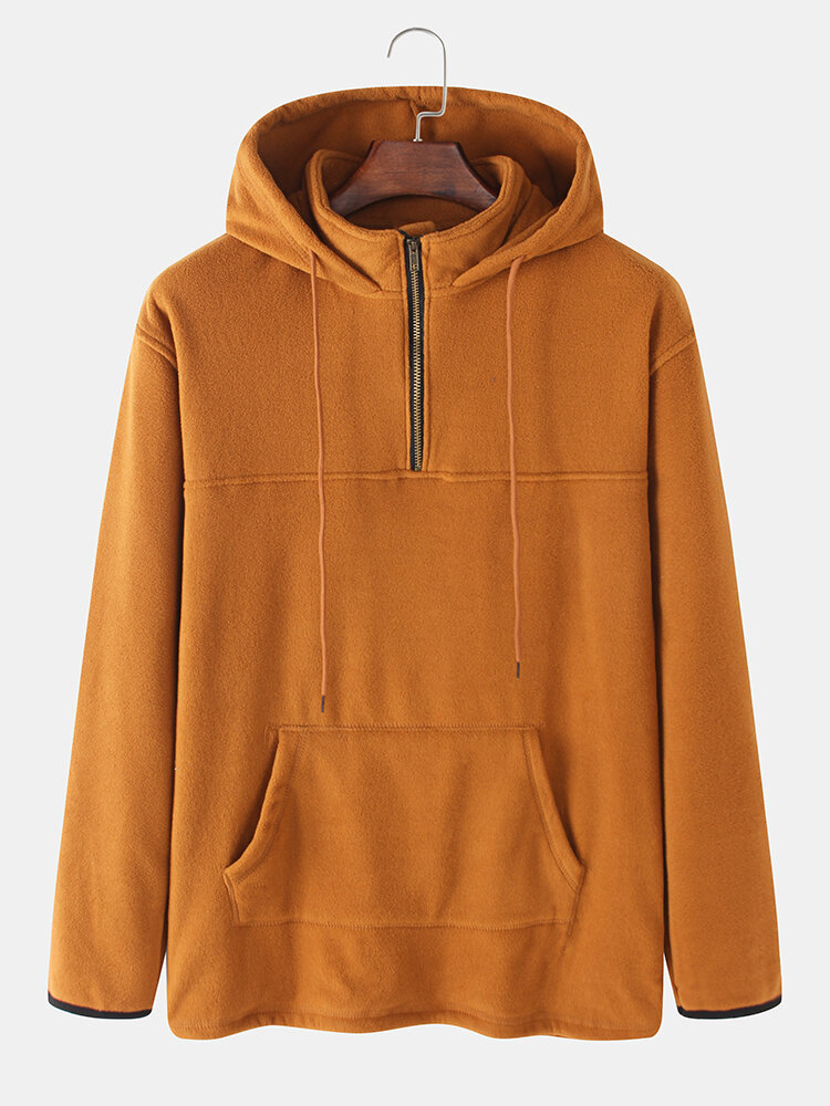 Mens Solid Color Half Zipper High Neck Long Sleeve Hoodies – Khaki S