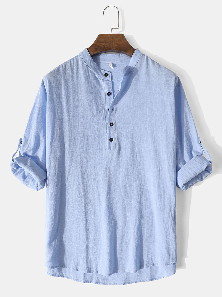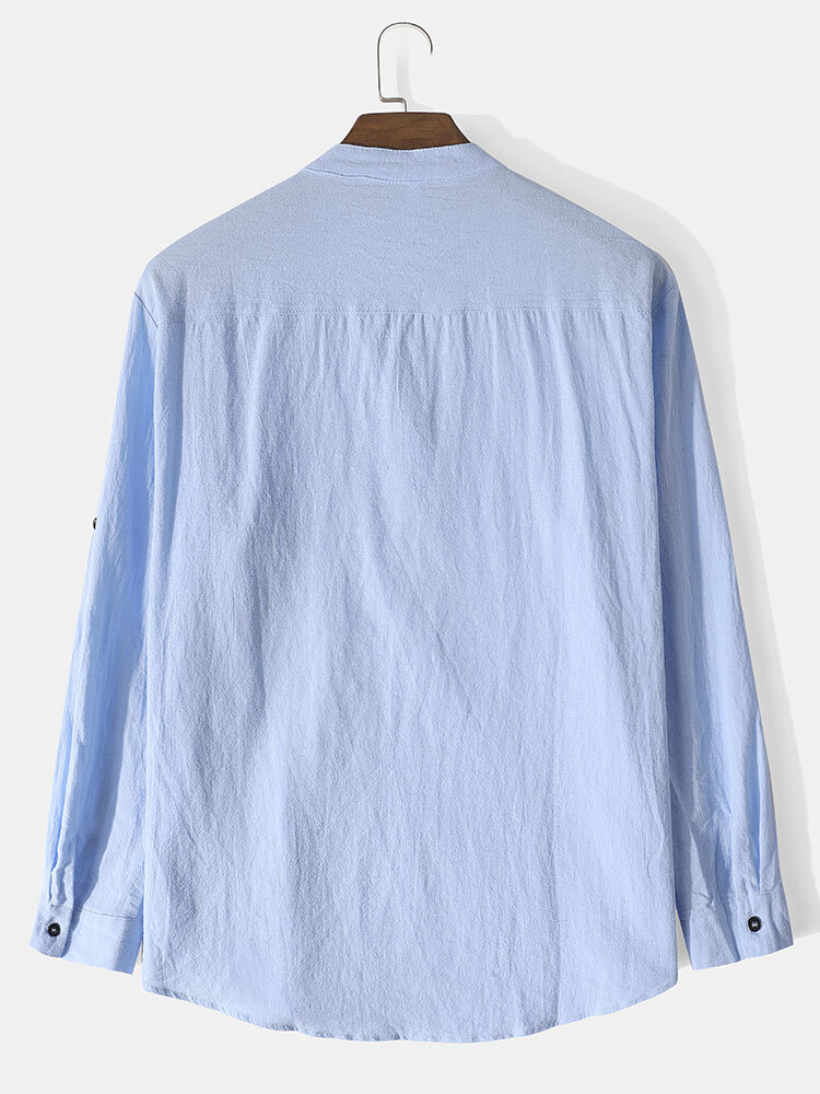 Decoration:ButtonFit Type:Regular FitMaterial:CottonNeckline:Stand CollarPattern Type:SolidScene:Leisure,CasualSeason:Spring,AutumnSize:XXL,L,XL,MSleeve:Long SleeveStyle:CasualThickness:Regular