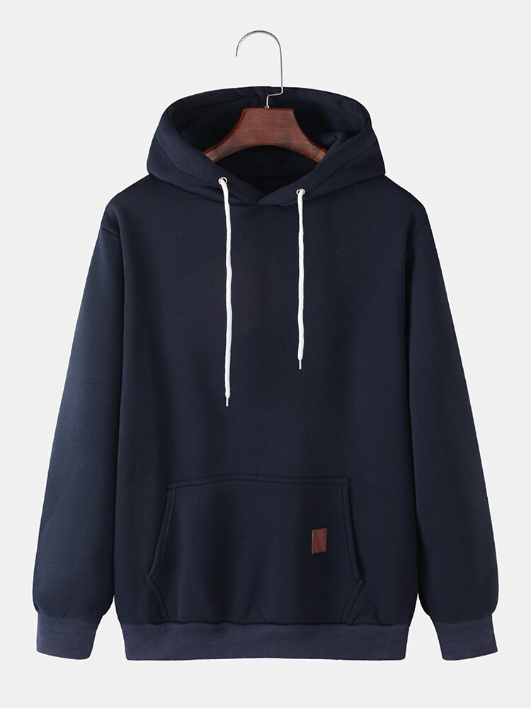 Mens Solid Color Kangaroo Pocket Simple Long Sleeve Hoodies – Black M