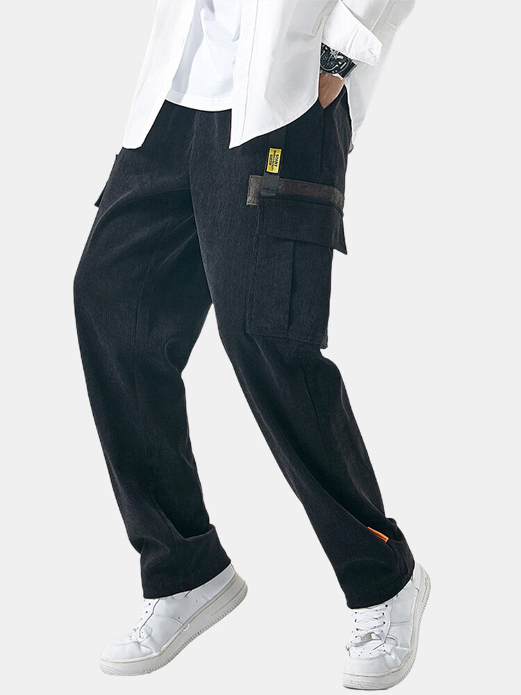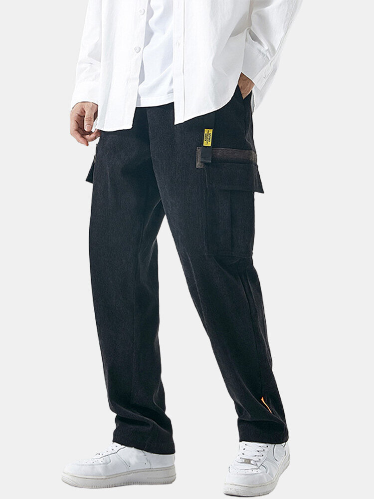 Mens Solid Color Multi Pocket Breathable Loose Cargon Pants – Grey 3XL