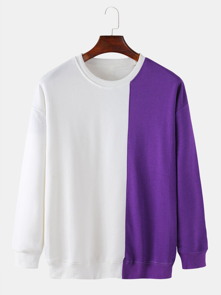 Mens Solid Color Patchwork Drop Shoulder Pullover Long Sleeve Sweatshirts – Blue 2XL