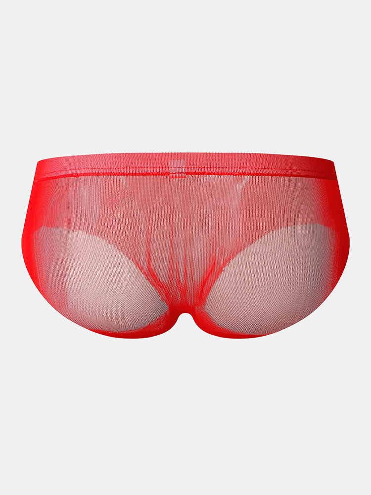 Mens Solid Color See Through Breathable Thin Mid Waist Full Hip Home Briefs – White S