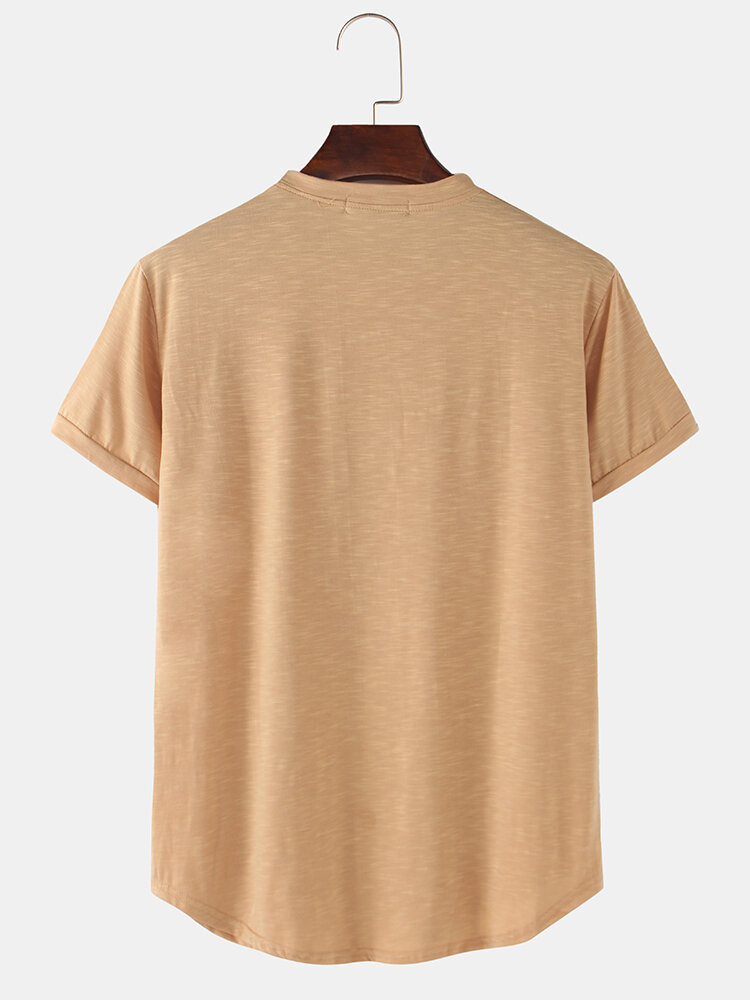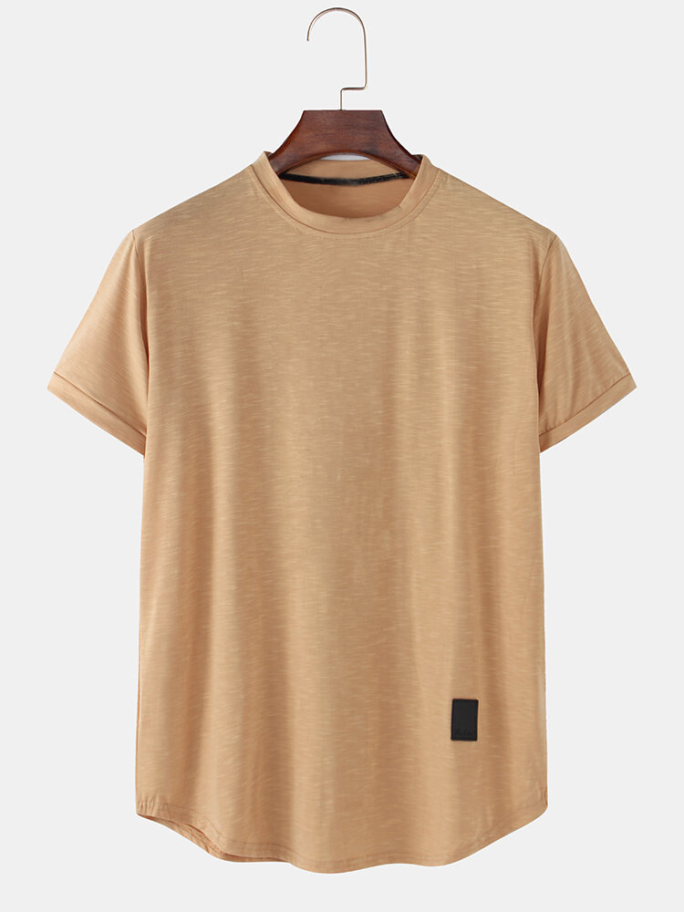 Description:Fit Type:Loose FitMaterial:Slub cottonNeckline:Round NeckPattern Type:SolidScene:Leisure,Home,Sport,CasualSeason:SummerSleeve:Short SleeveStyle:Sport,Casual,Simple
