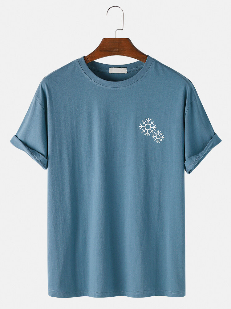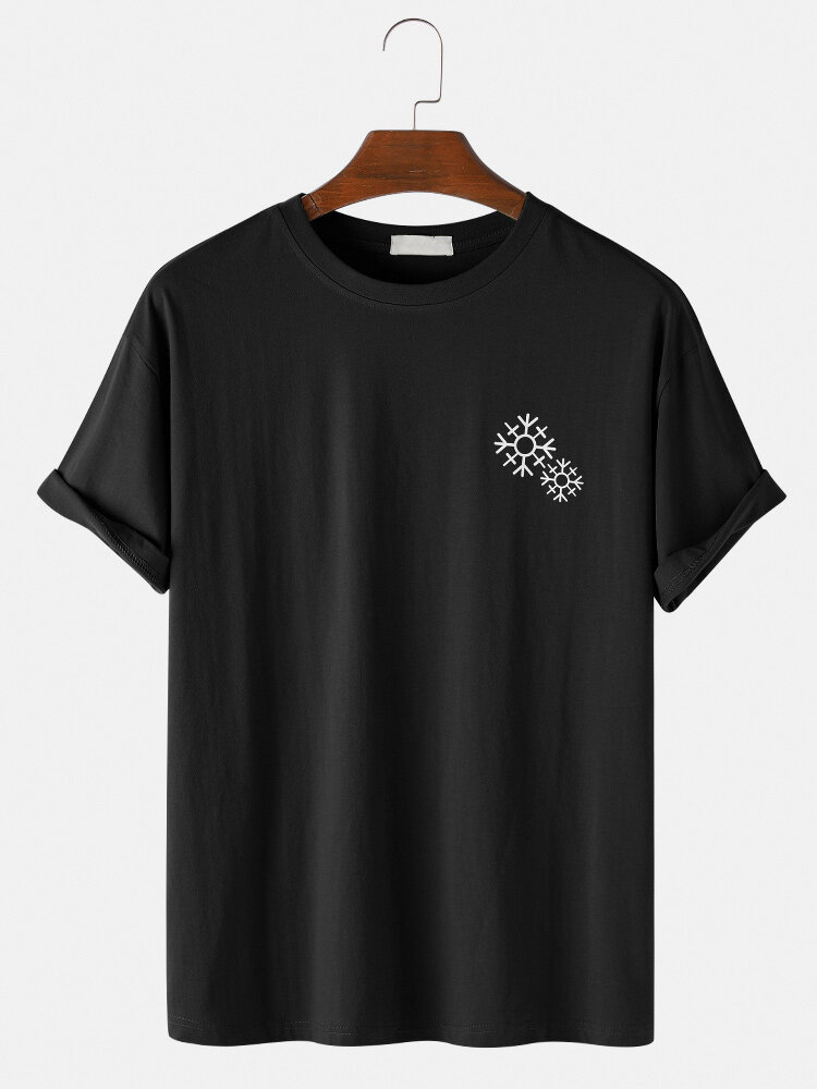 Mens Solid Color Snowflake Print O-Neck Casual Short Sleeve T-Shirt – Black S