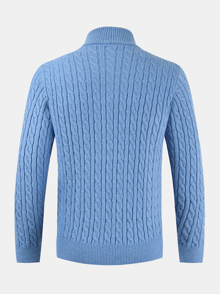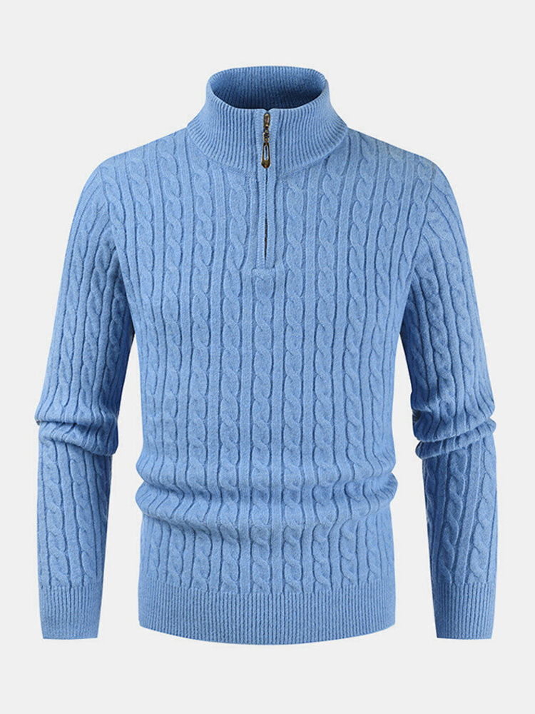 Mens Solid Color Twist Knit Half Zipper High Neck Winter Warm Sweater – M Gray