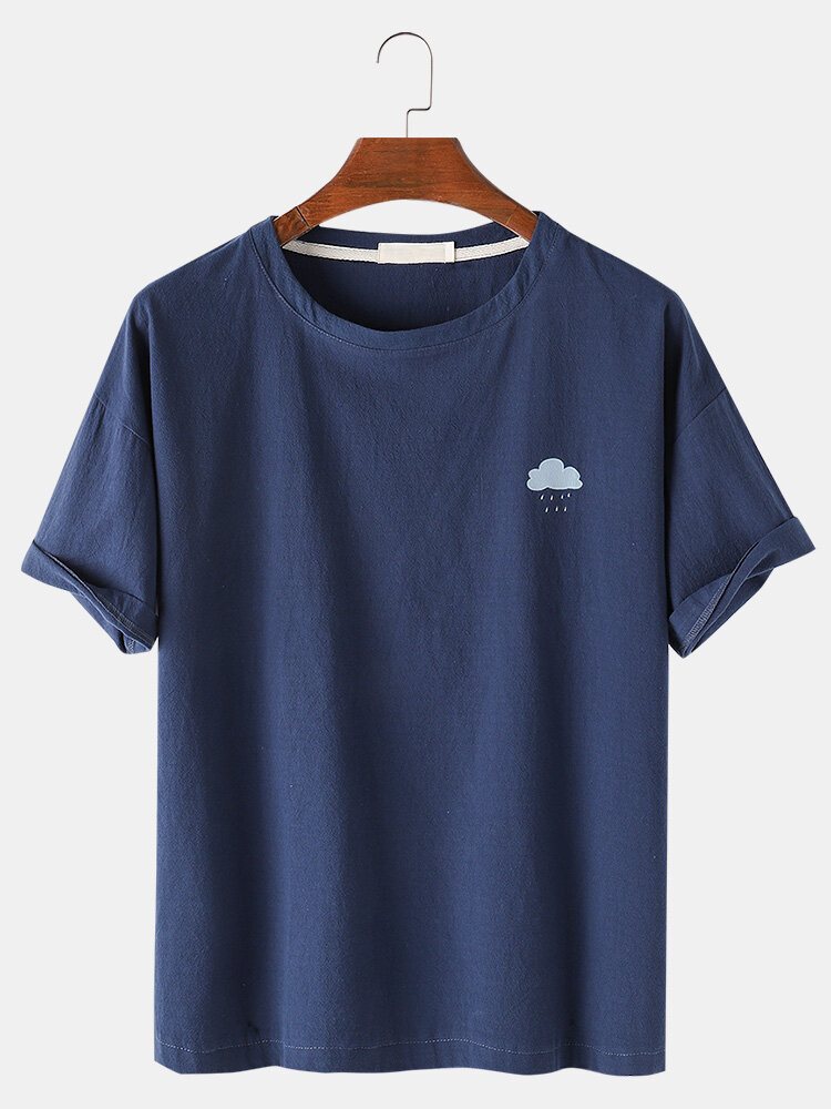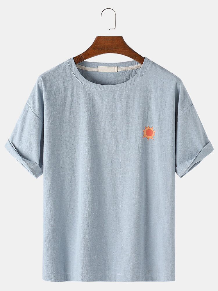 Mens Solid Color Weather Pattern Loose Casual Round Neck T-Shirts – Khaki L