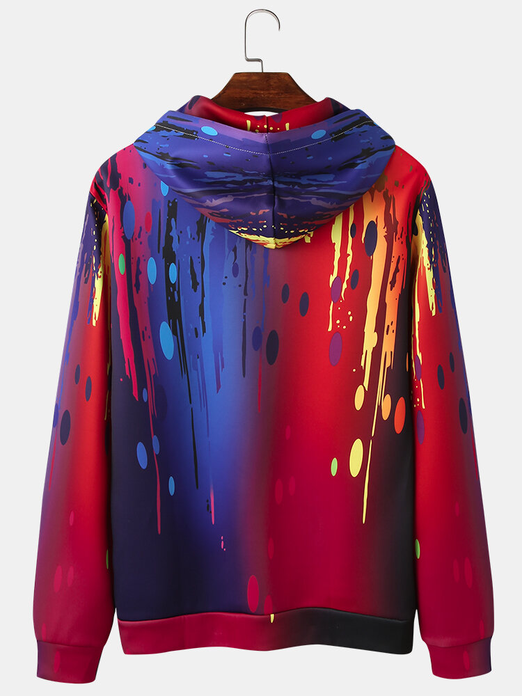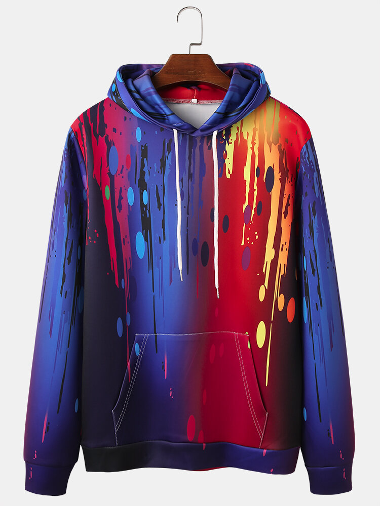 Mens Splash Ink Printing Print Kangaroo Pocket Long Sleeve Drawstring Hoodies – Blue S