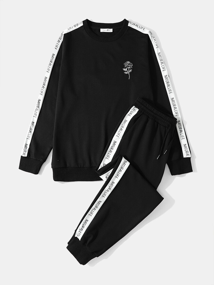 Mens Sport Black White Patchwork Sweatshirt Ankle Length Bottom Suits – Black S
