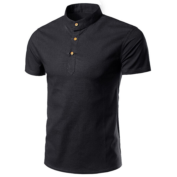 Mens Stand Collar Buttons Slim Fit Linen Short Sleeve Shirt – XL Beige White
