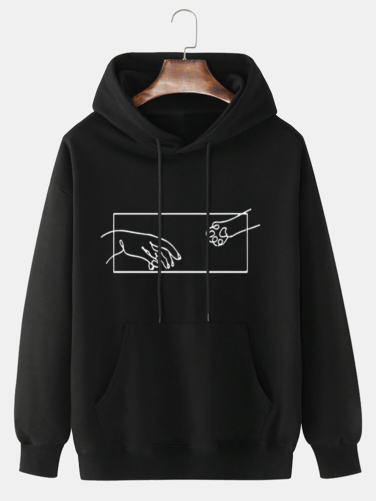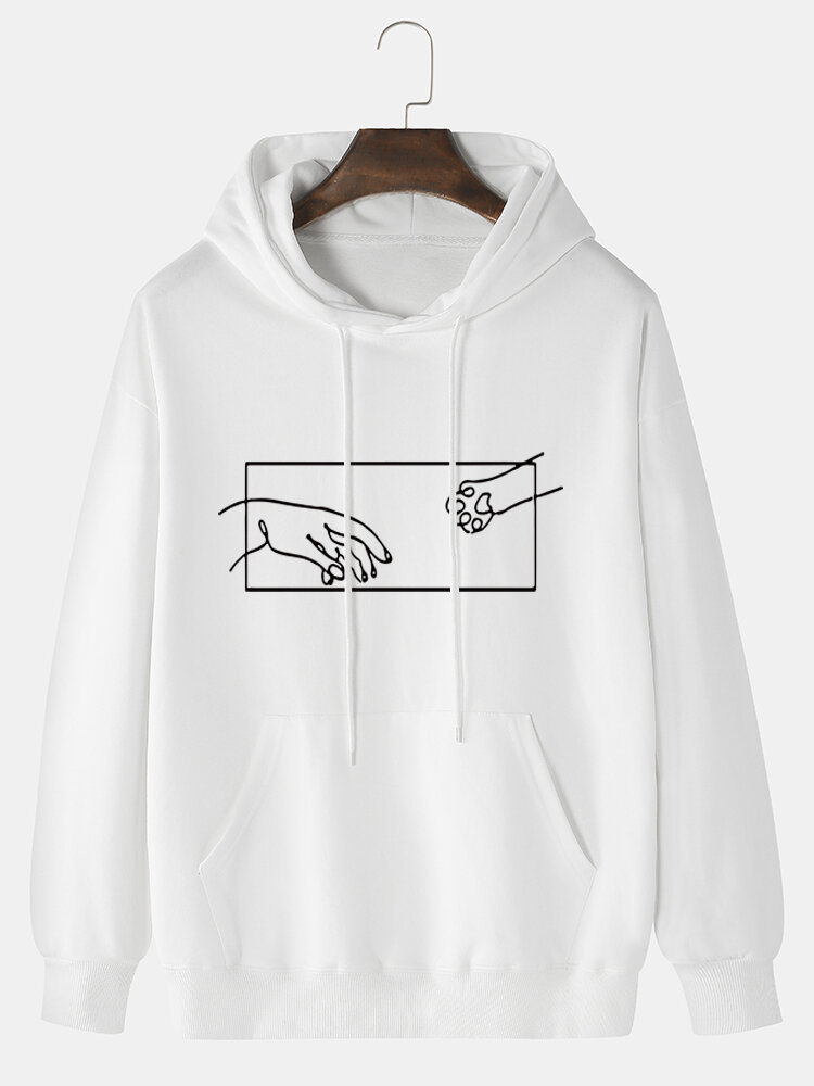 Mens Stick Figure Gesture Print Long Sleeve Casual Drawstring Hoodies – White L