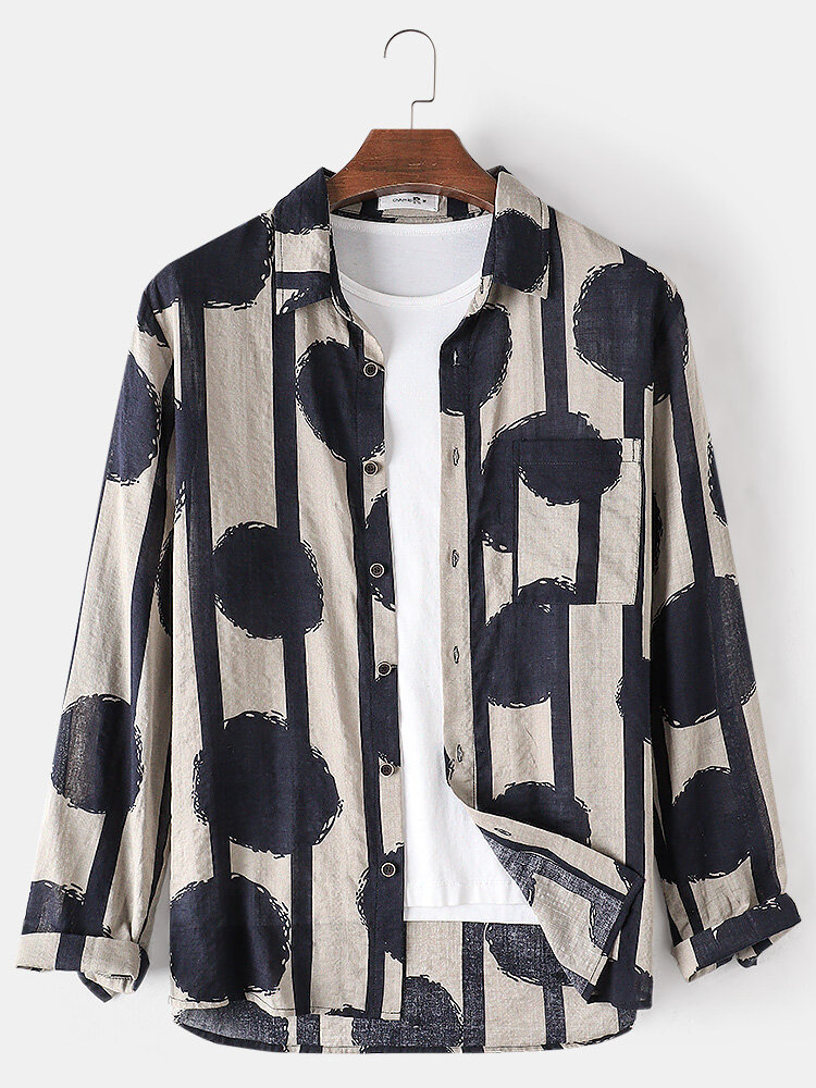 Mens Stripe & Dot Print Chest Pocket Long Sleeve Cotton Shirts – Blue S