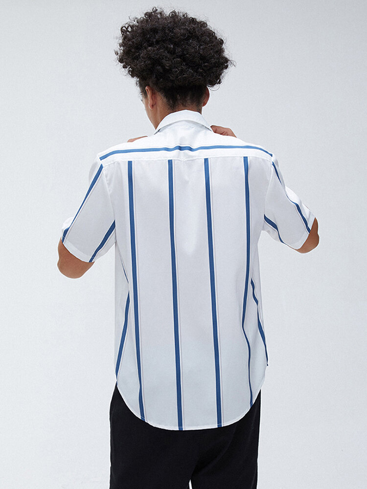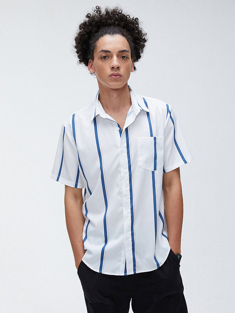 Mens Stripe Fashion Practical Pocket Short Sleeve Casual Shirts – Navy XL