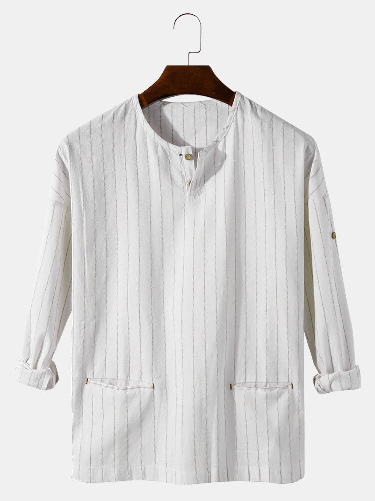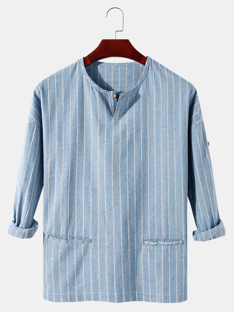 Description:Decoration:PocketFit Type:Loose FitMaterial:FlaxPattern Type:StripedScene:Leisure,Home,CasualSeason:Spring,AutumnSize:XXL,L,XL,S,MSleeve:Long SleeveStyle:Vintage,Casual