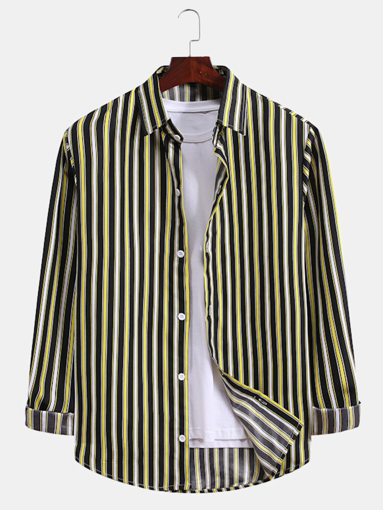 Description:Fit Type:Regular FitMaterial:PolyesterNeckline:LapelPattern Type:StripedScene:Leisure,Home,CasualSeason:Spring,AutumnSize:XXL,L,S,XL,MSleeve:Long SleeveStyle:Vintage,CasualThickness:Regular