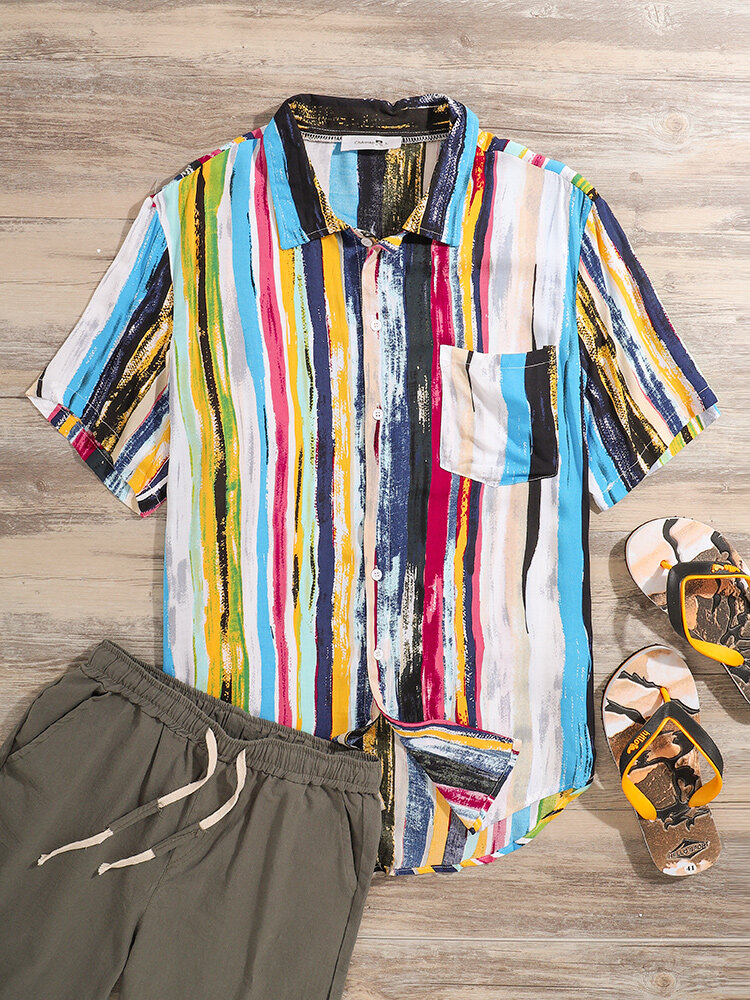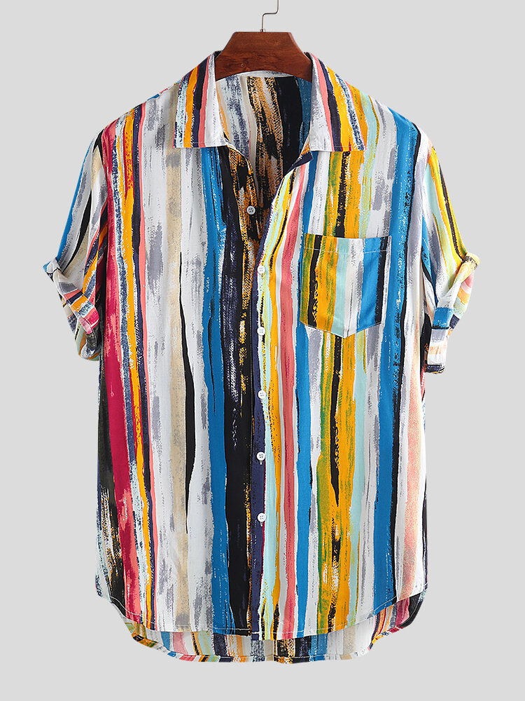 Brand:ChArmkpRDecoration:Pocket,ButtonFit Type:Regular FitMaterial:RayonNeckline:LapelPattern Type:StripedScene:Leisure,Beach,CasualSeason:Spring,SummerSize:XXXL,XXL,L,XL,MSleeve:Short SleeveStyle:Casual,Hawaii StyleThickness:Regular