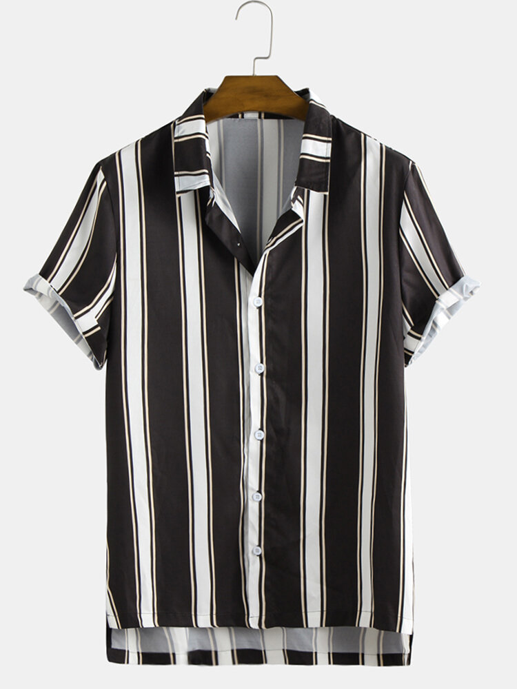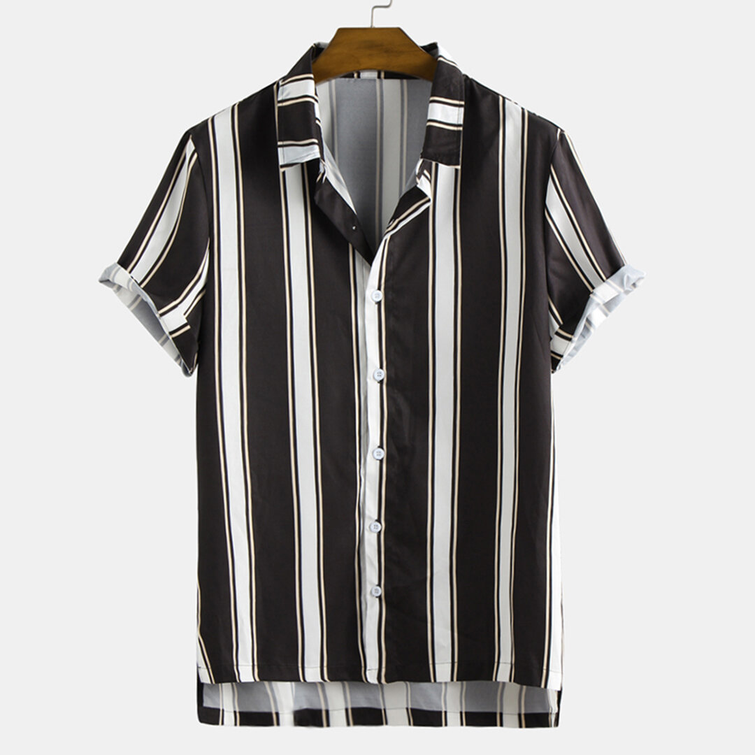 Mens Stripe Printing Turn Down Collar Casual Shirts – 2XL Black