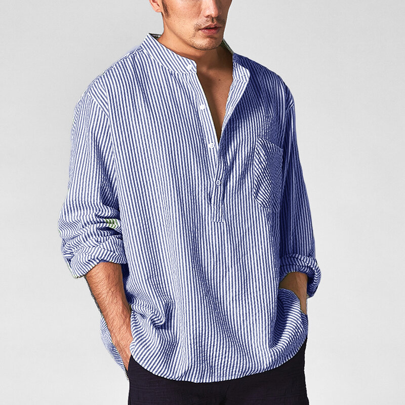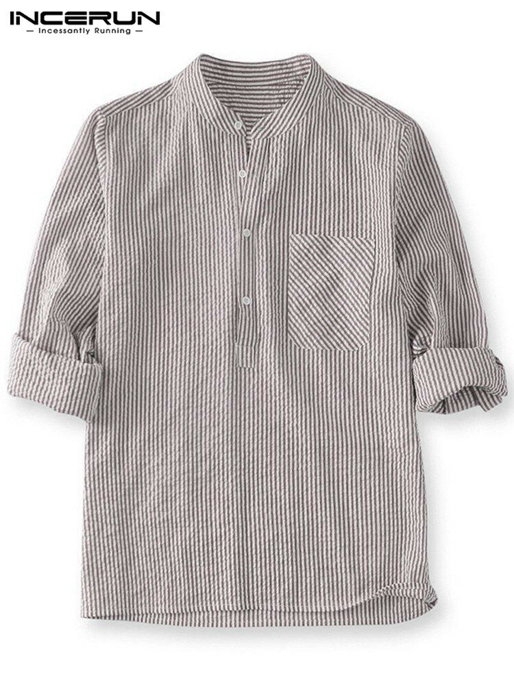 Mens Striped Casual Loose Long Sleeve Tops Shirts – S Coffee