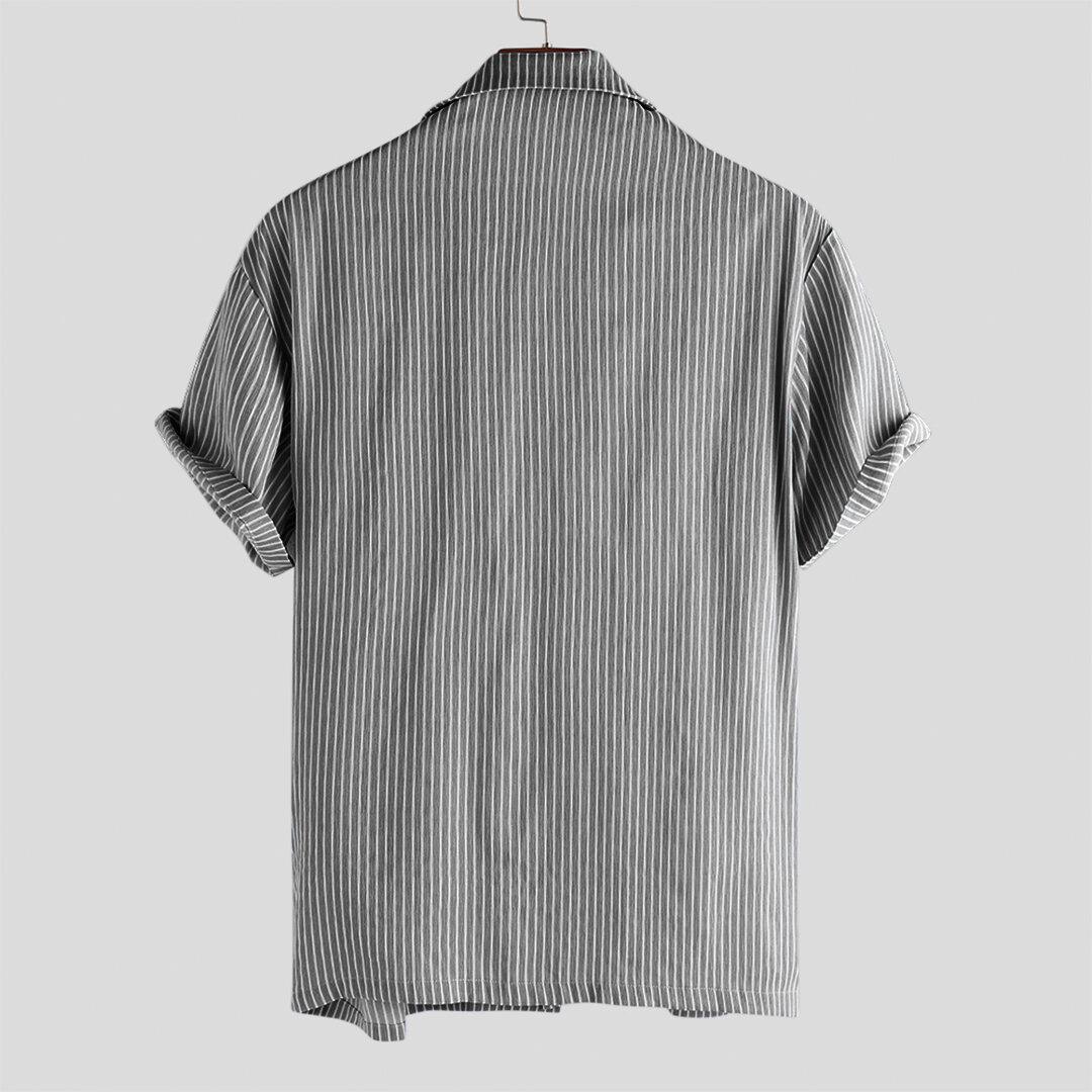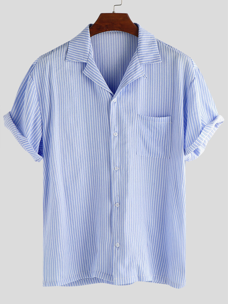 Mens Striped Chest Pocket Short Sleeve Casual Loose Shirts – XL Light Blue
