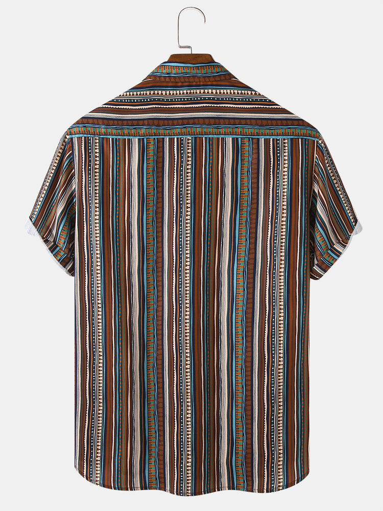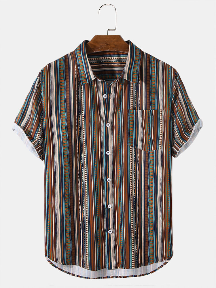 Brand:ChArmkpRDecoration:PocketFit Type:Regular FitMaterial:PolyesterNeckline:LapelPattern Type:StripedScene:Beach,CasualSeason:Spring,SummerSize:XXL,L,S,XL,MSleeve:Short SleeveStyle:Vintage,CasualThickness:Regular