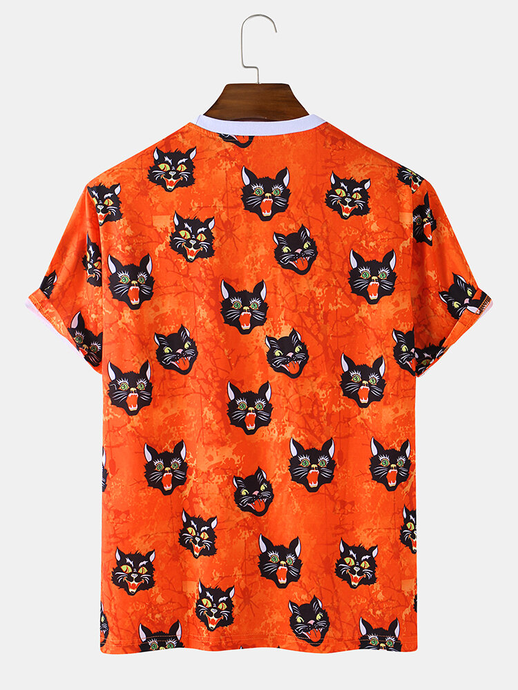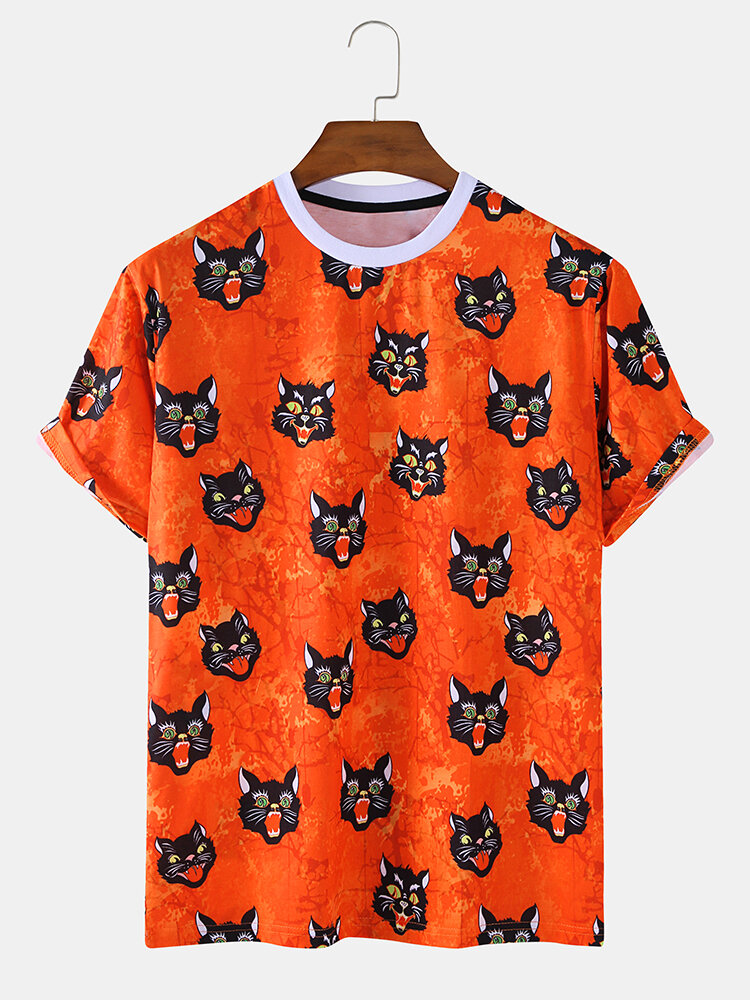 Mens Style Cat Cartoon Round Neck Short Sleeve Casual T-Shirts – Red 2XL