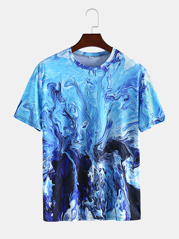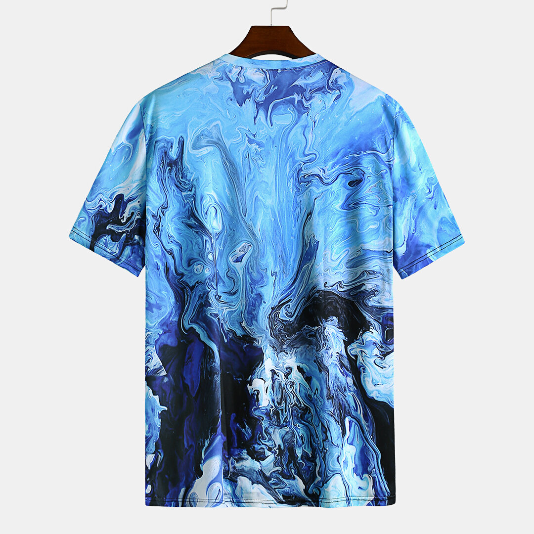 Mens Summer 3D Printed Crew Neck Short Sleeve Casual T-Shirt – L Blue