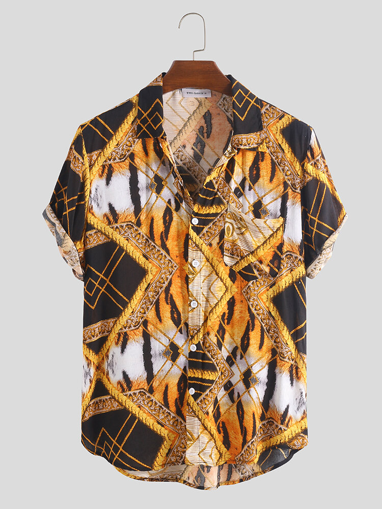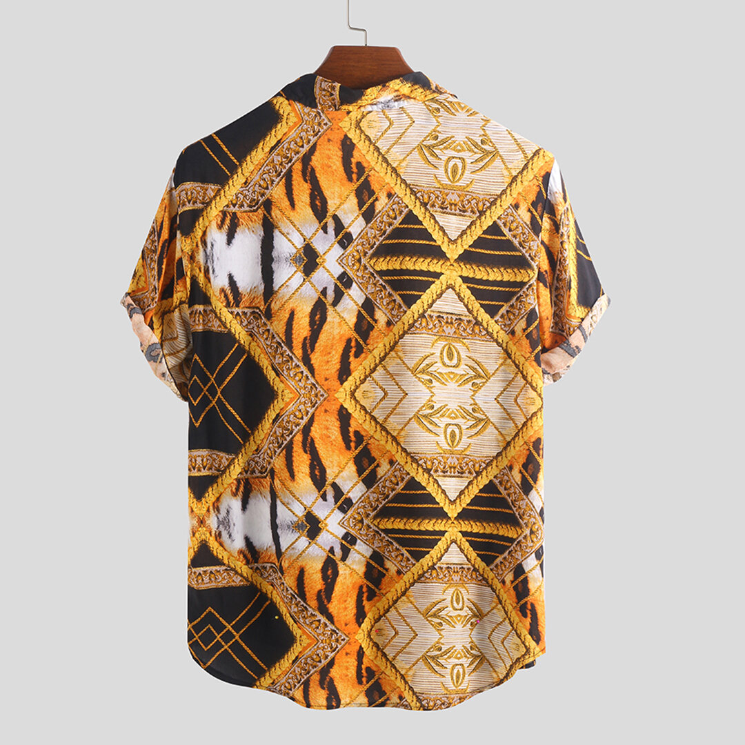 Brand Name: ChArmkpRSleeve Length: Short SleeveItem Type: ShirtsPattern Type: Pattern PrintedGender: MenFit Type: LooseStyle: Leisure, FashionThickness: RegularCollar: Turn-down CollarSeason: SummerMaterial: 100% RayonColor: Blue, Green, YellowCuff Type: Straight SleevesOccasion: Casual, Vacation