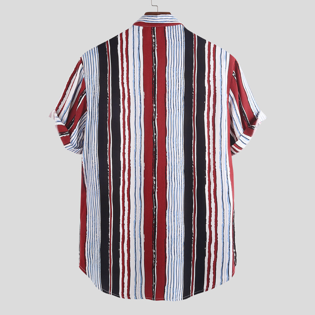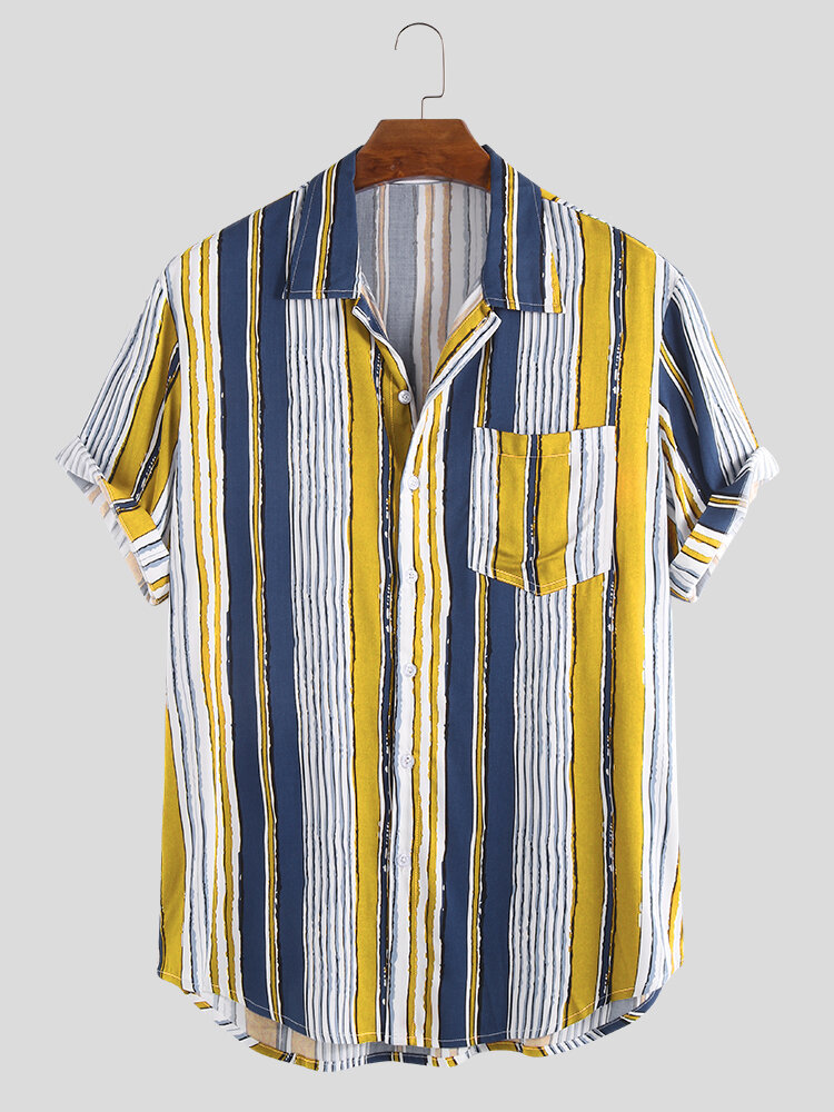 Mens Summer Casual Loose Short Sleeve Striped Shirts – 3XL Army Green
