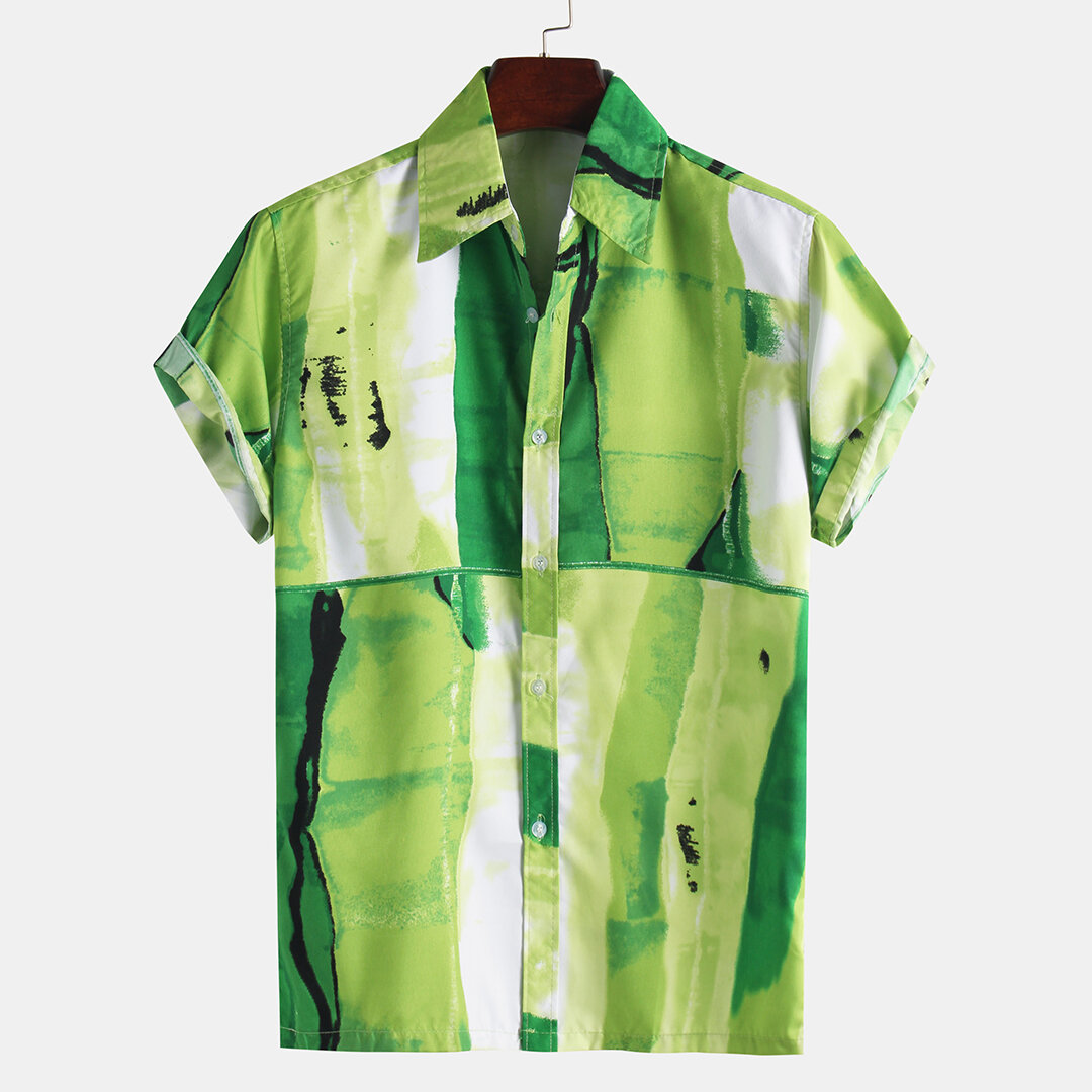 Mens Summer Colorful Printed Short Sleeve Casual Shirts – M Green