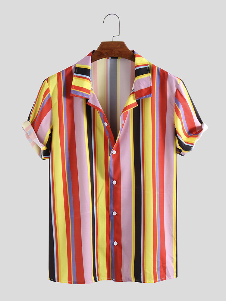 Mens Summer Colorful Stripe Printed Casaul Shirts – XL Red