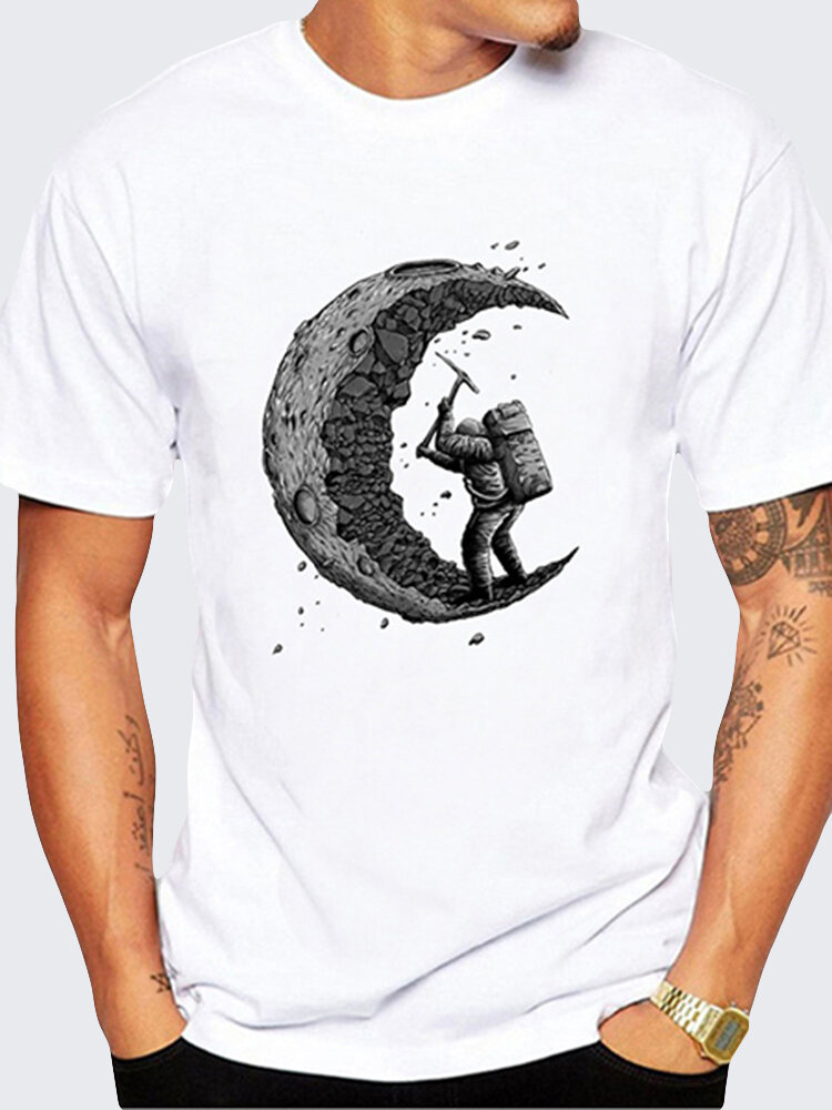 Mens Summer Creative Printed O-neck Short Sleeve Casual – XL White