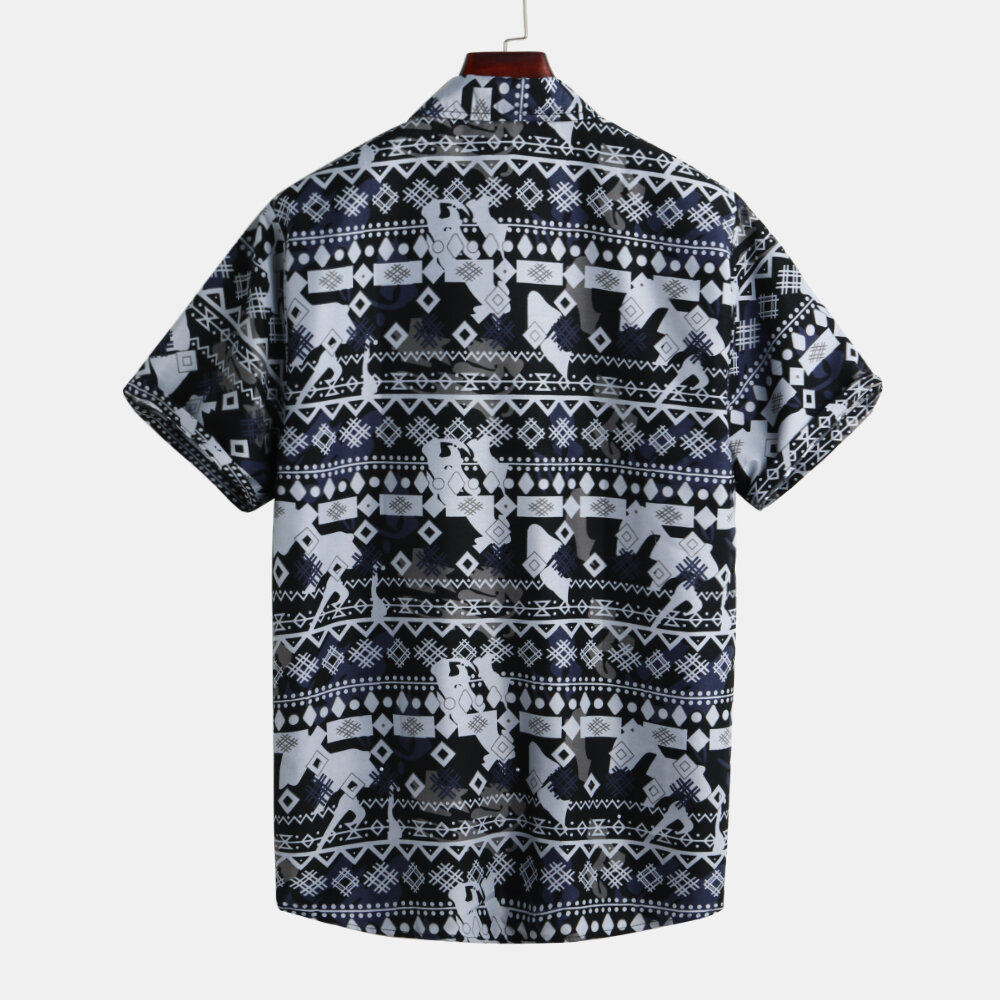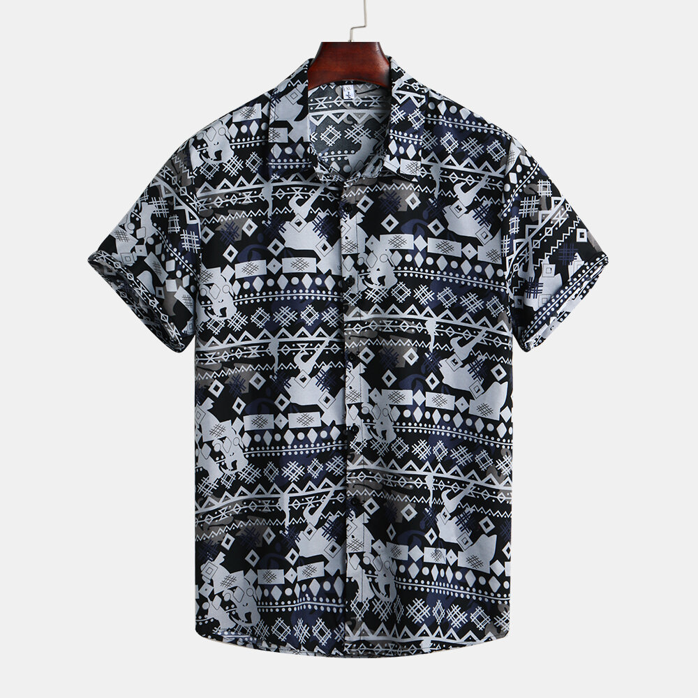 Mens Summer Ethnic Printed Hawaiian Casual Shirts – L As Picture