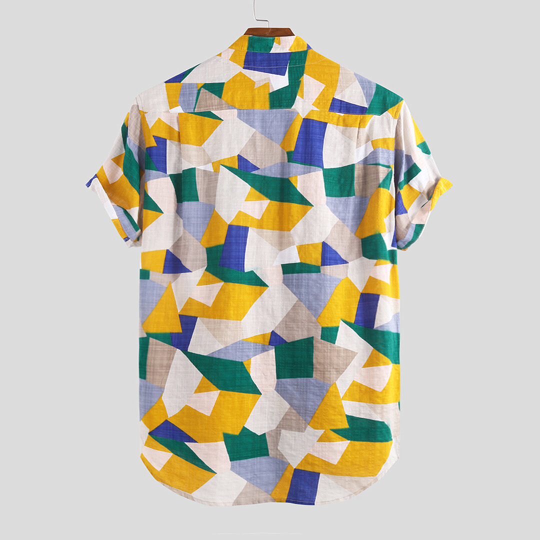 Mens Summer Fashion Casual Loose Color Blocks Printing Shirt – 2XL Blue