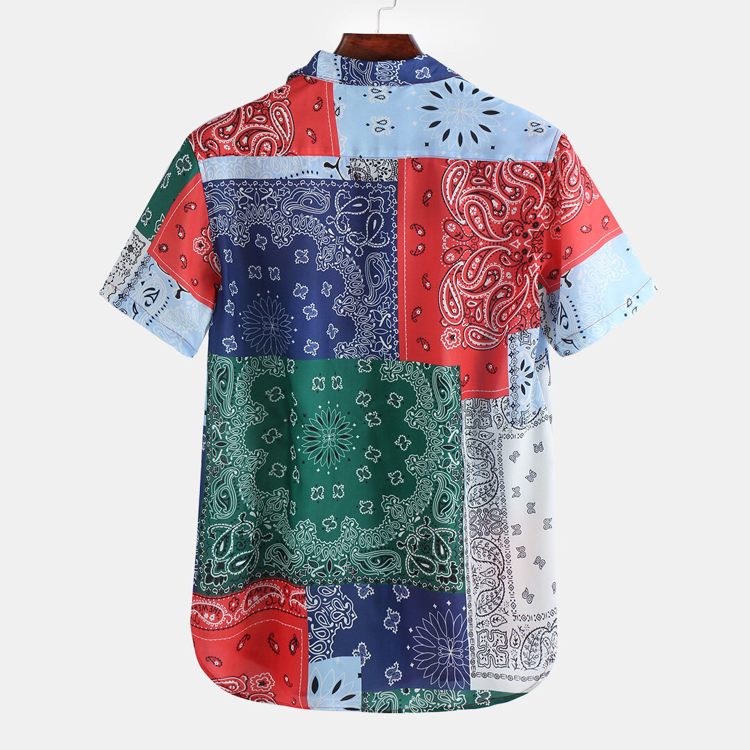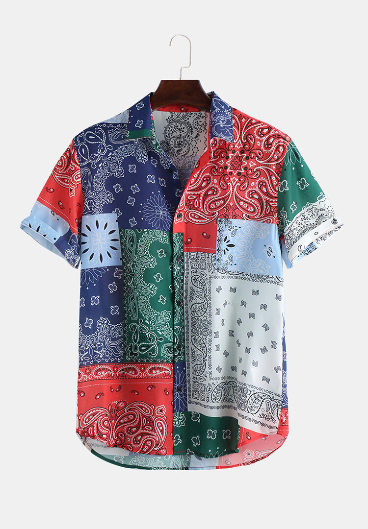 Mens Summer Fashion Pattern Patchwork Design Chiffon Lightweight Shirts – L #01