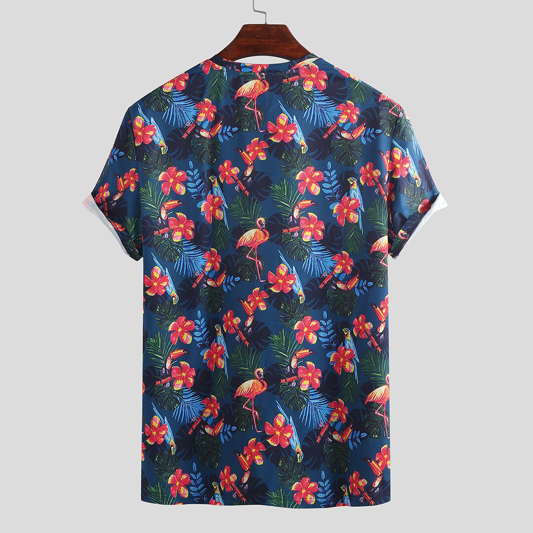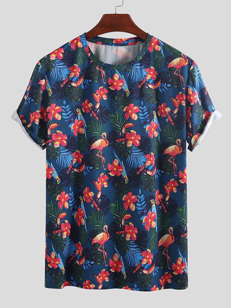 Mens Summer Flamingo Printed T-shirts – XL Purple
