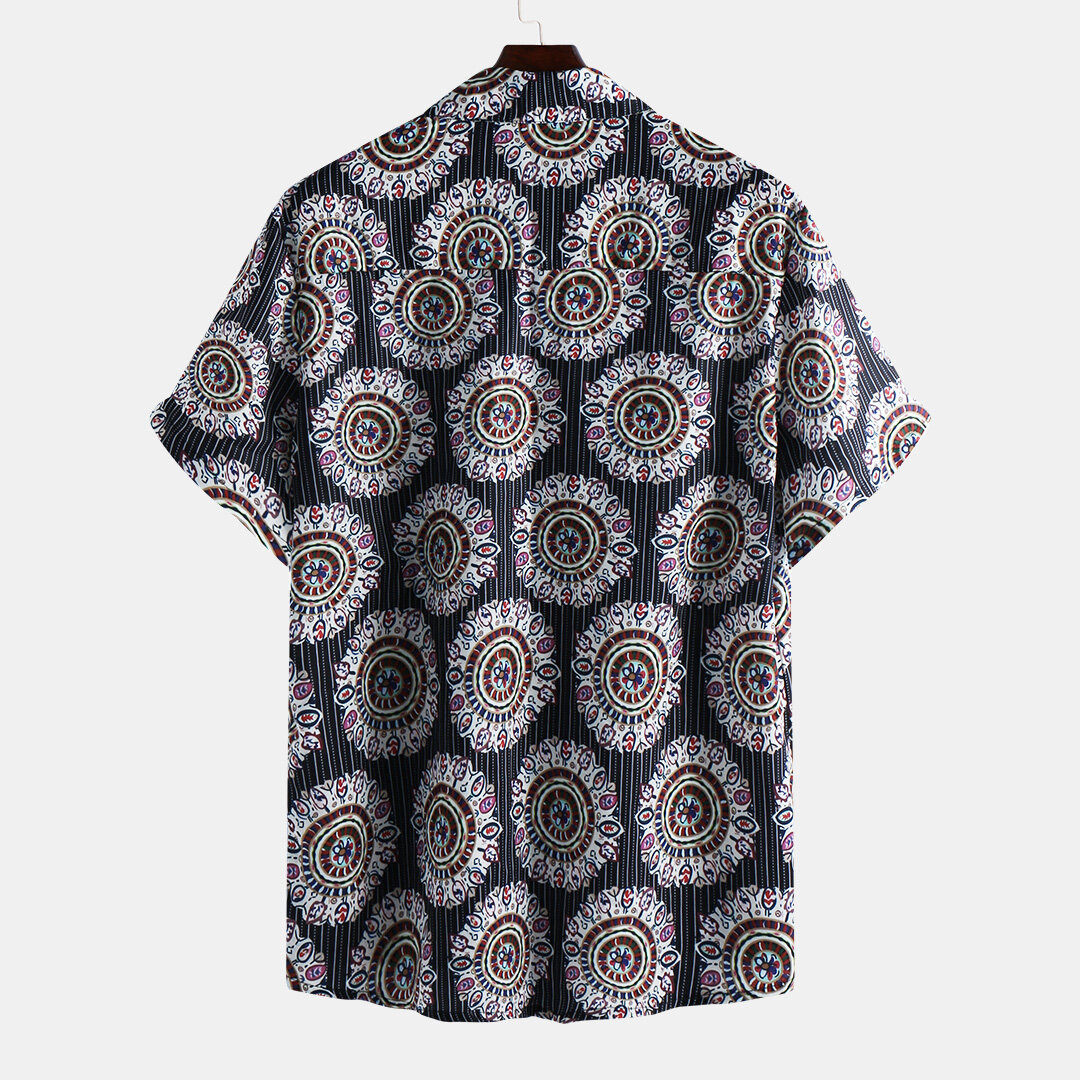 Mens Summer Floral Pattern Printed Half Buttons Casual Shirts – M Black