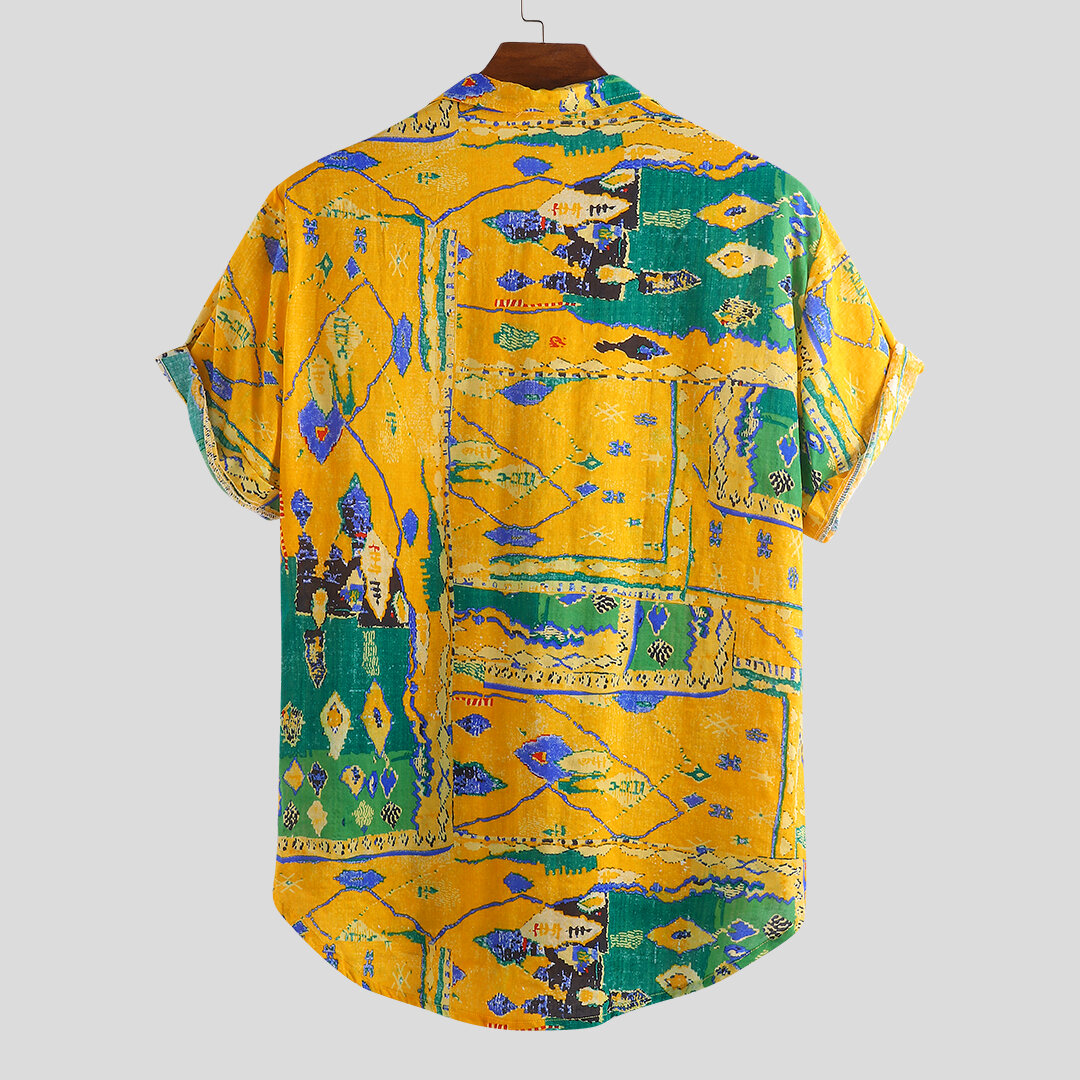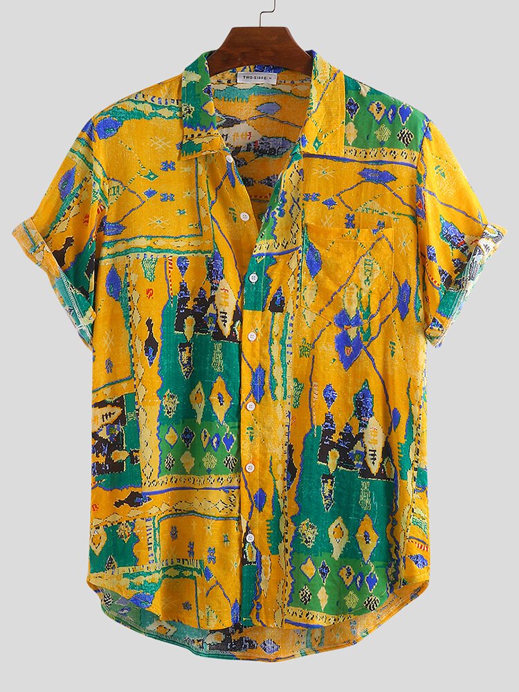 Mens Summer Graffiti Printing Chest Pocket Turn Down Collar Short Sleeve Loose Shirts – M Red