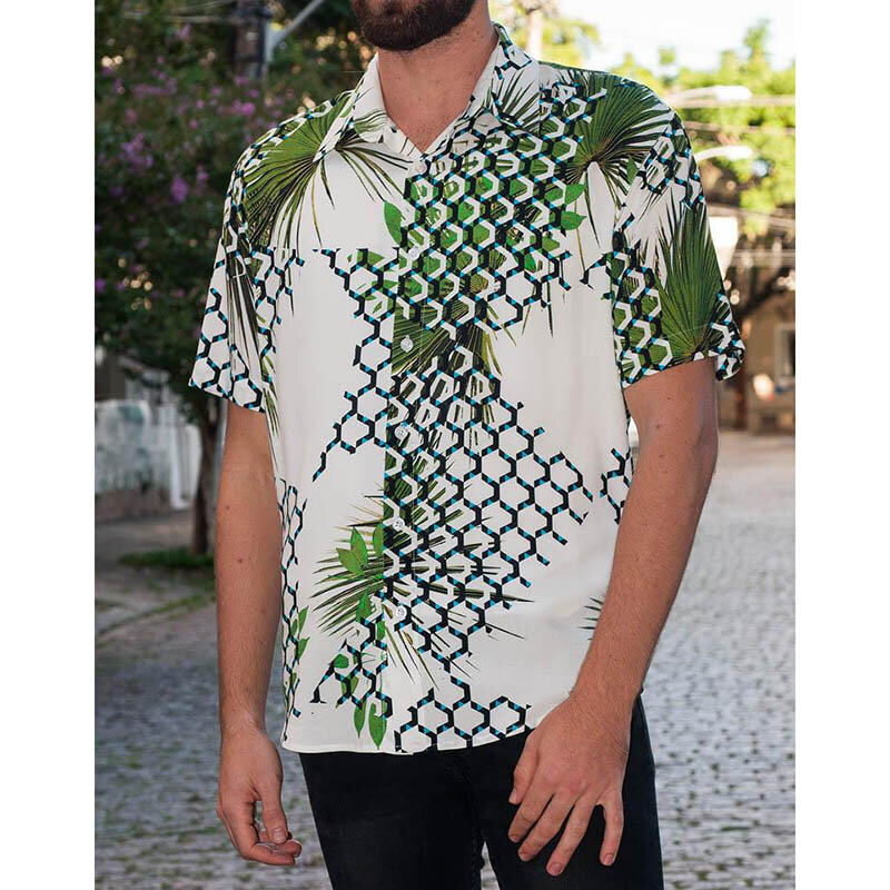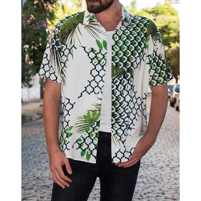 Mens Summer Hawaiian Shirts Short Sleeve Casual Fashion Printing Shirts – S White