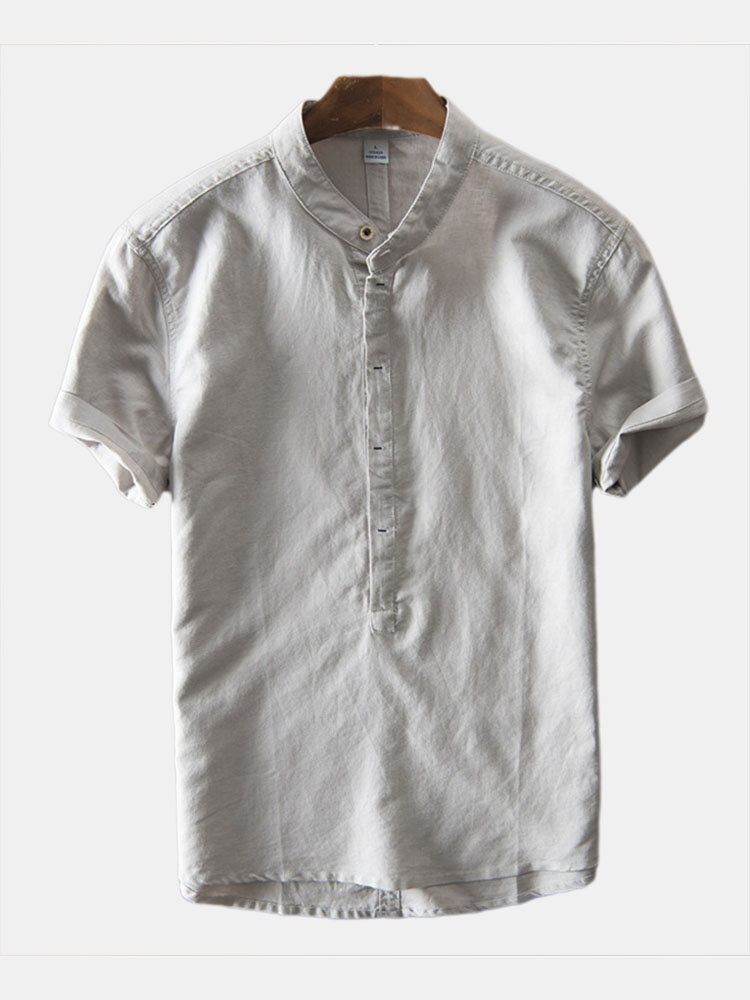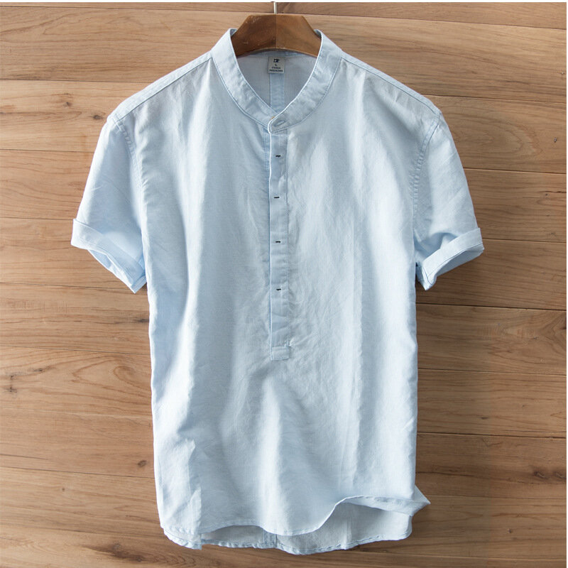 Item Type:T-ShirtMaterial:FlaxThickness:RegularFit Type:LooseStyle:CasualColor:White,Light Blue,Light Gray,Navy BlueOccasion:Work,Leisure,EverydaySeason:Summer