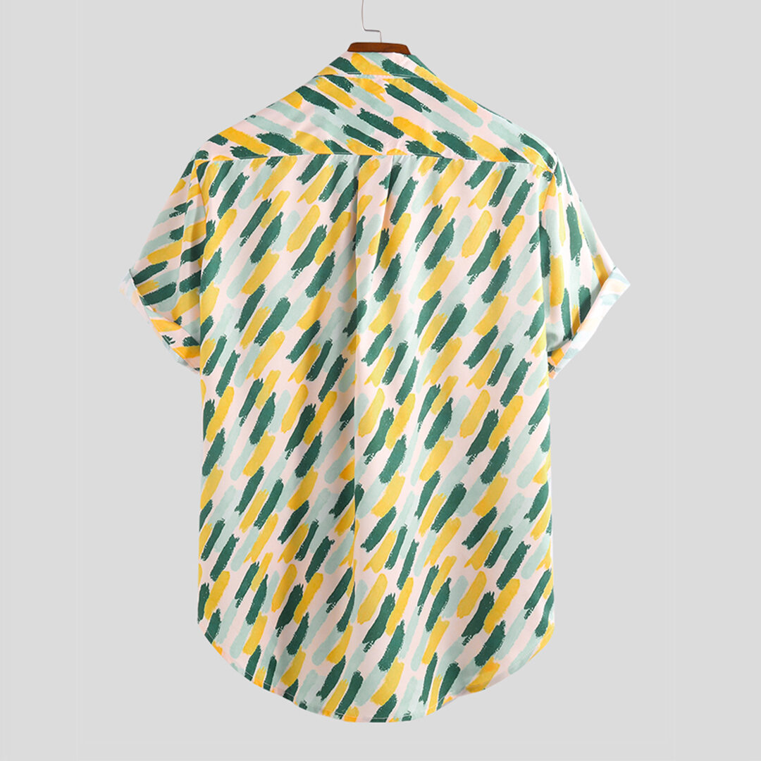Brand Name: ChArmkpR Sleeve Length: Short SleeveItem Type: Shirts Pattern Type: PrintedGender: Men Fit Type: FitStyle: Casual, Fashion Thickness: RegularCollar: Turn-down Collar Season: Spring, SummerMaterial: 100% Polyester Color: Sky Blue,YellowCuff Type: Shirt Sleeves Occasion: Leisure Package includes