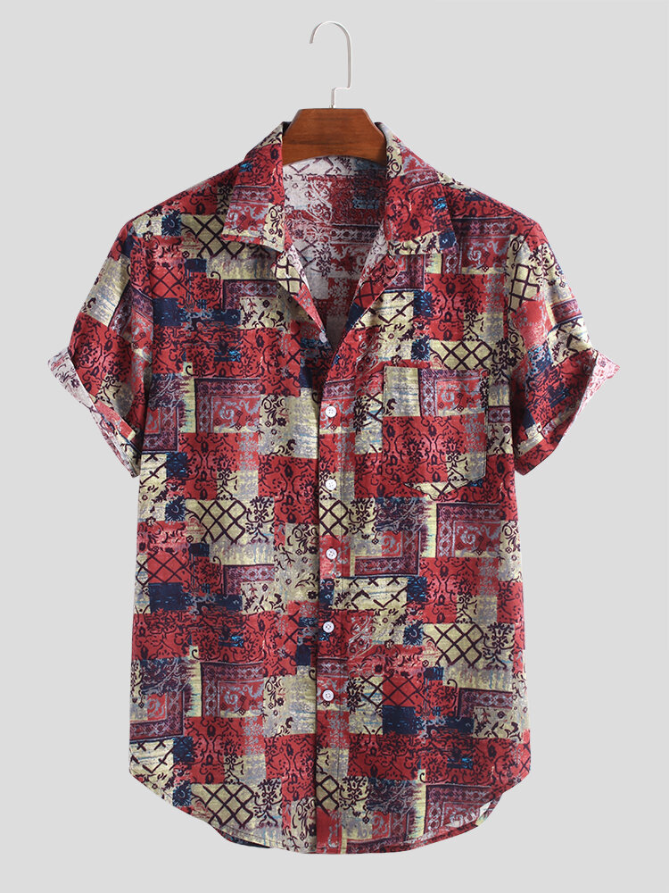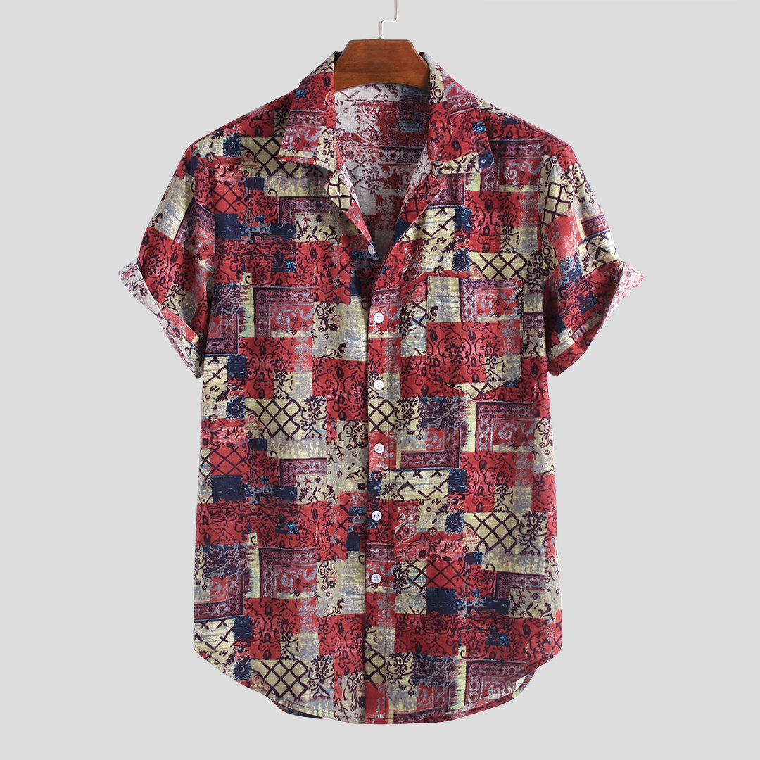 Item Type: Shirts Pattern Type: PrintedGender: Men Fit Type: FitStyle: Casual, Fashion,Ethnic Thickness: RegularCollar: Turn-down Collar Season: Spring, SummerMaterial:100% Cotton Sleeve Length: Short SleeveColor: Red, BrownCuff Type: Shirt Sleeves Occasion: Leisure Package includes