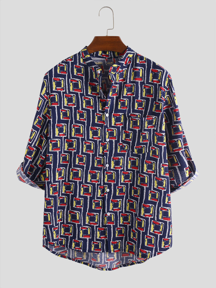 Mens Summer Plaid Printed Stand Collar Breathable Shirts – M White