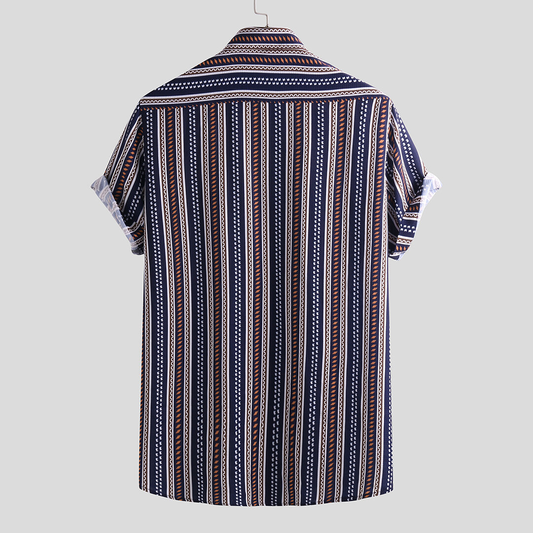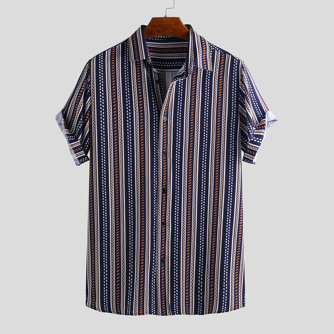 Mens Summer Stripe Printed Ethnic Style Loose Comfy Shirts – L Red