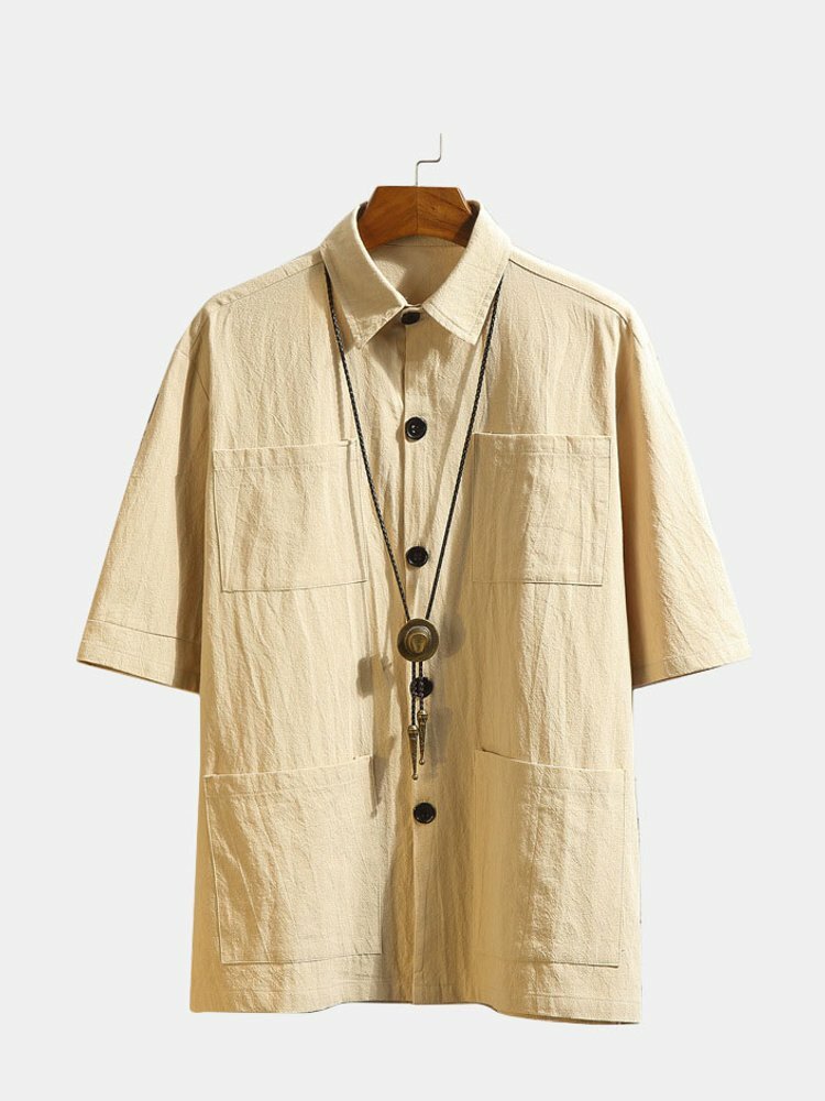 Item Type: Shirts Pattern Type: Solid ColorGender: Men Fit Type: FitStyle: Casual, Fashion Thickness: RegularCollar: Turn-down Collar Season: Spring, SummerMaterial: Cotton Color: Beige, Black, Army GreenCuff Type: Shirt Sleeves Occasion: LeisureSleeve Length: Short Sleeve Package includes