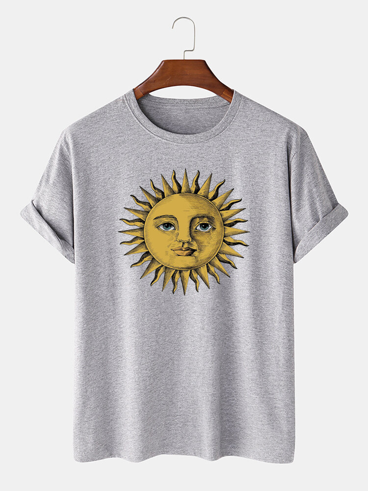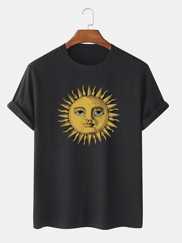Mens Sun Print Crew Neck Short Sleeve T-Shirts – Black L