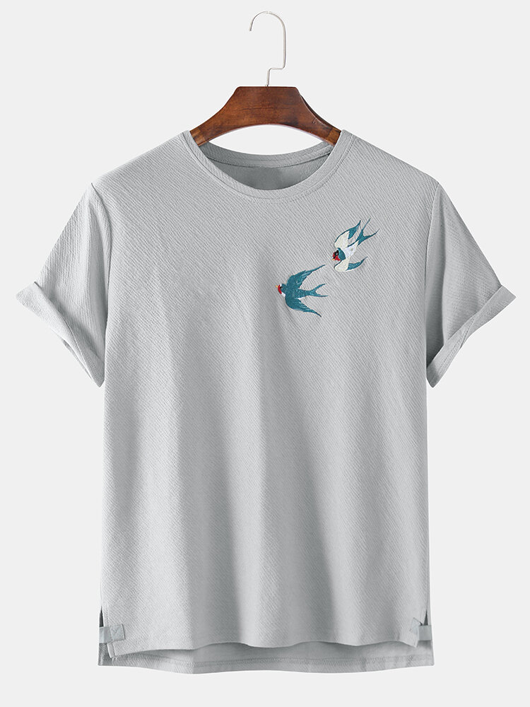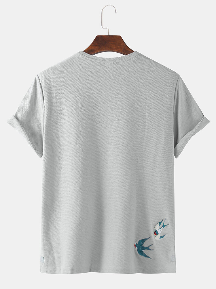 Mens Swallow Embroidery Solid Color Designer Hem Short Sleeve Casual T-Shirts – White M