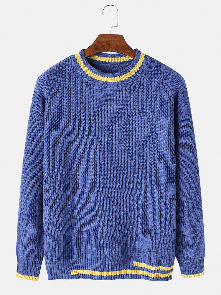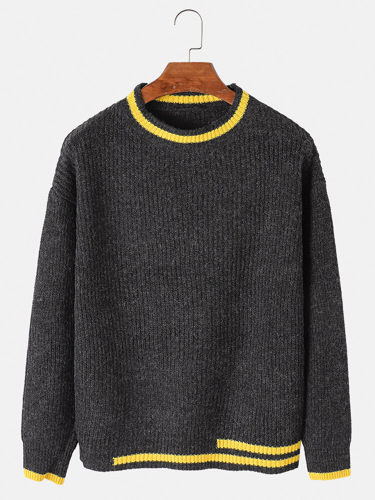Mens Thick Contrast Color Crew Neck Knitted Warm Regular Fit Sweater – M Black