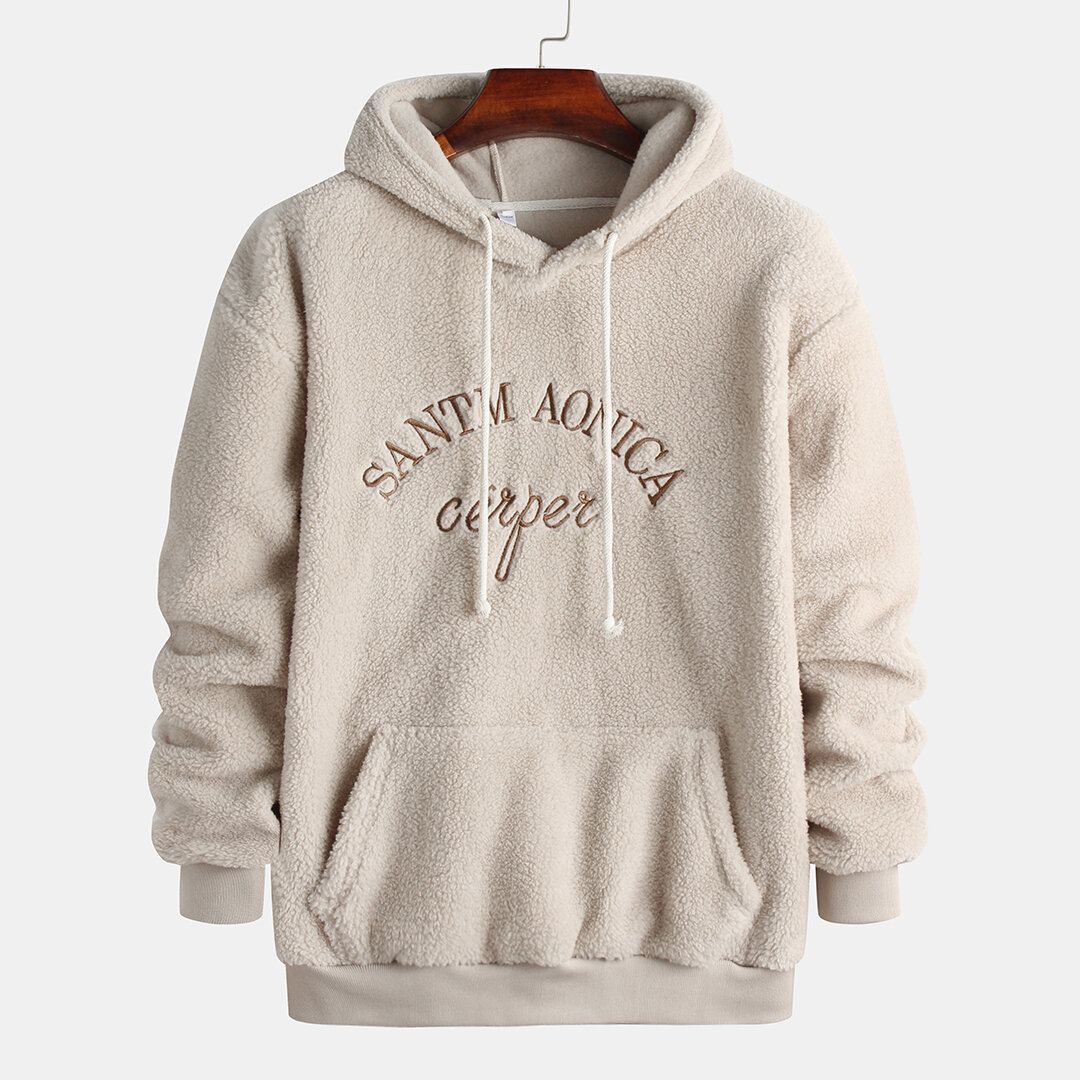 Mens Thickened Hooded Pullover Solid Color Casual Sweatshirt – M Beige