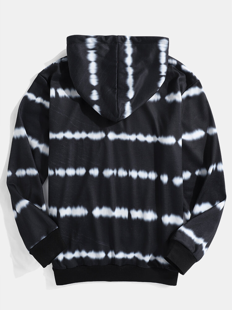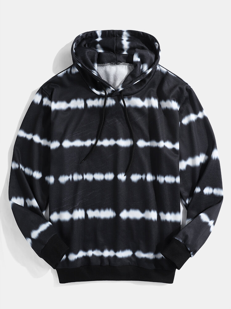 Mens Tie Dye Long Sleeve Simple Black Drawstring Hoodies – Black S