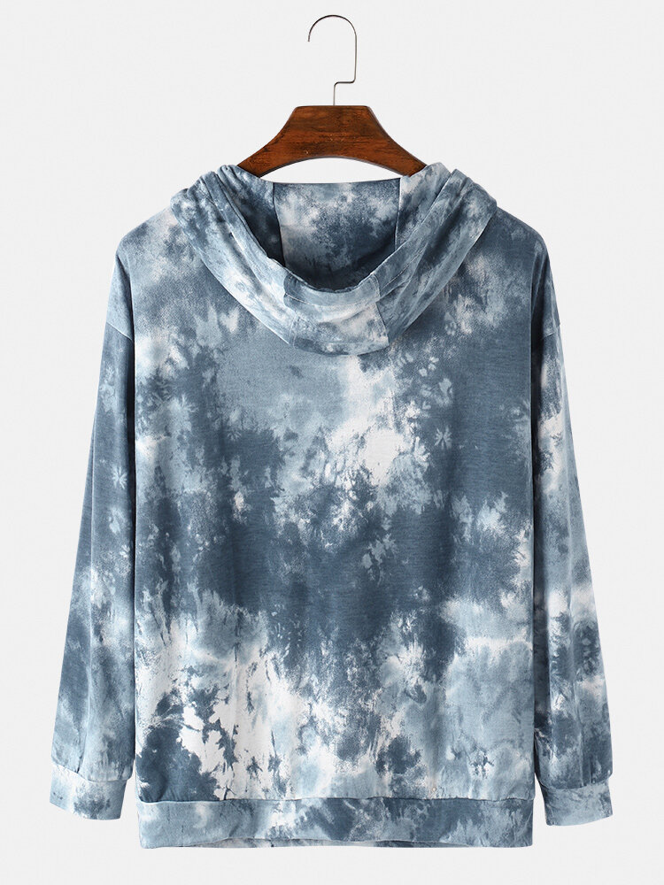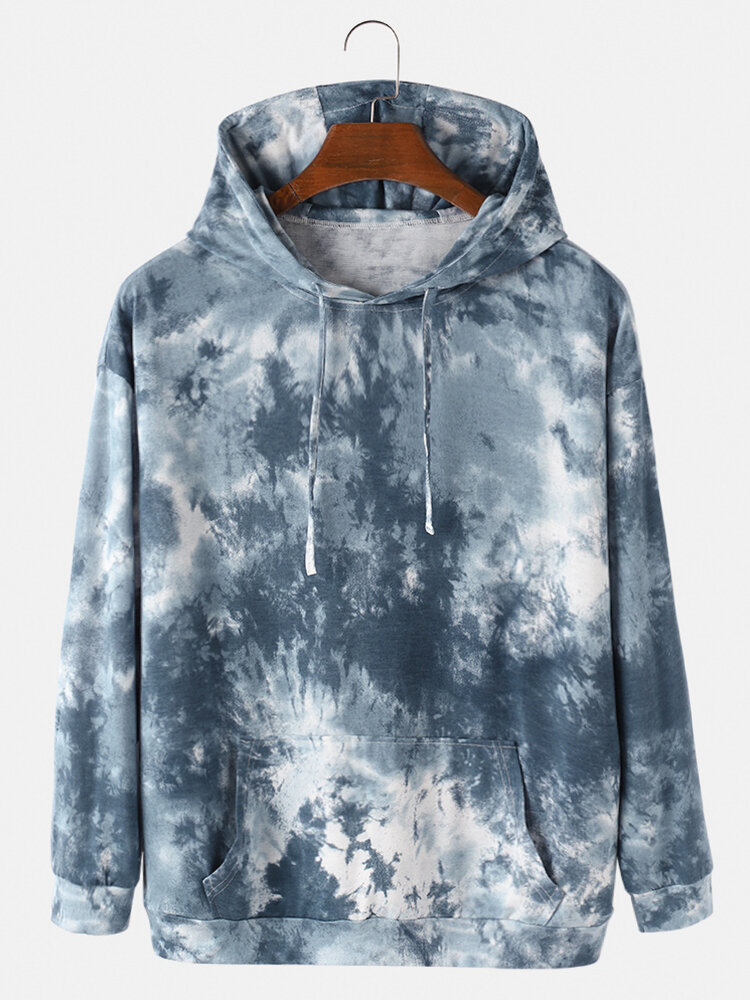 Mens Tie-Dye Print Fit Drawstring Hoodies With Kangaroo Pocket – Blue XL